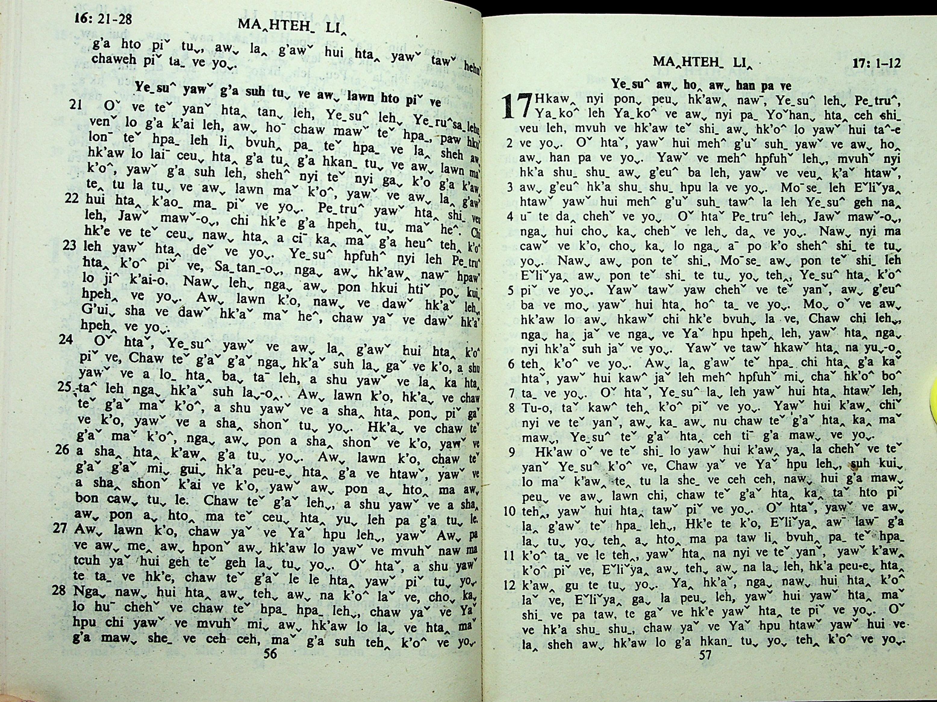 1985年拉祜文新約全書 馬太福音 16 章 21 節到 17 章 12 節