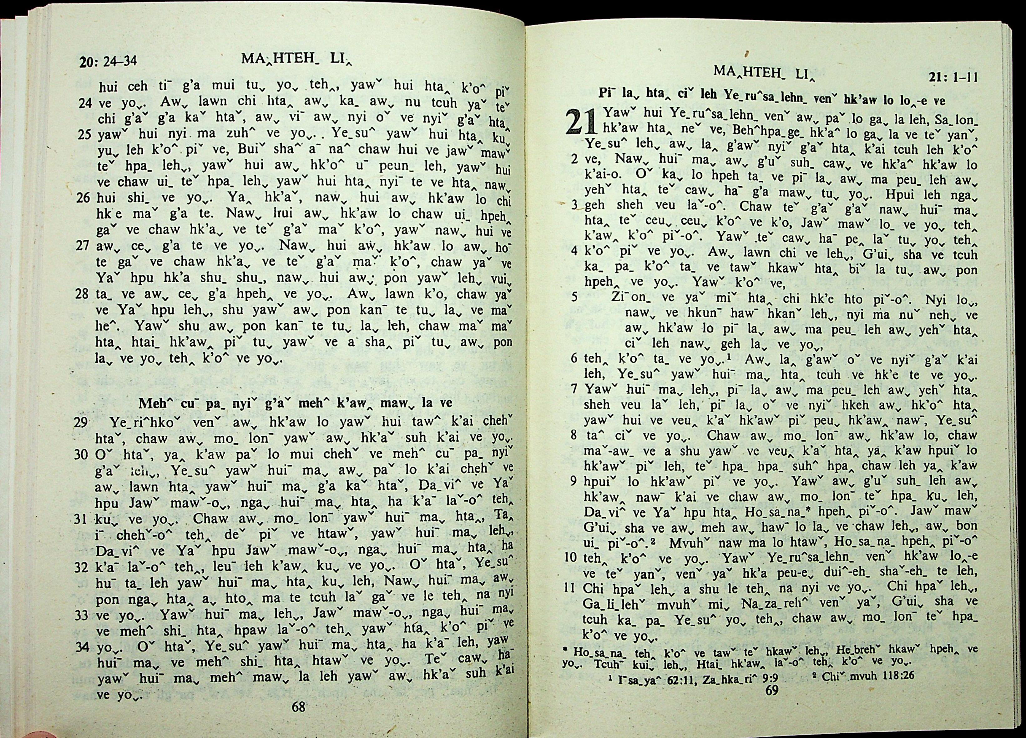 1985年拉祜文新約全書 馬太福音 20 章 24 節到 21 章 11 節
