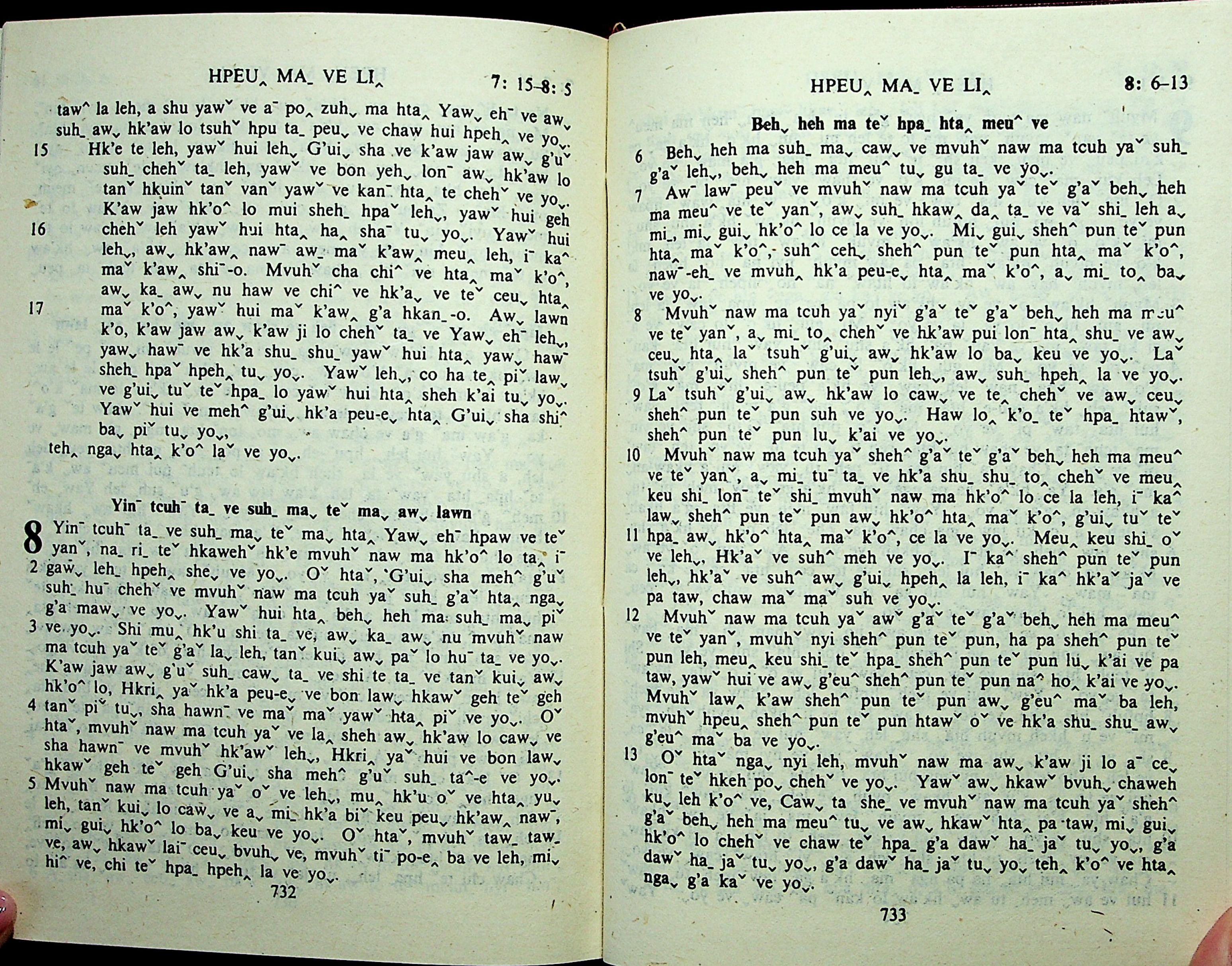 1985年拉祜文新約全書 啟示錄 7 章 15 節到 8 章 13 節