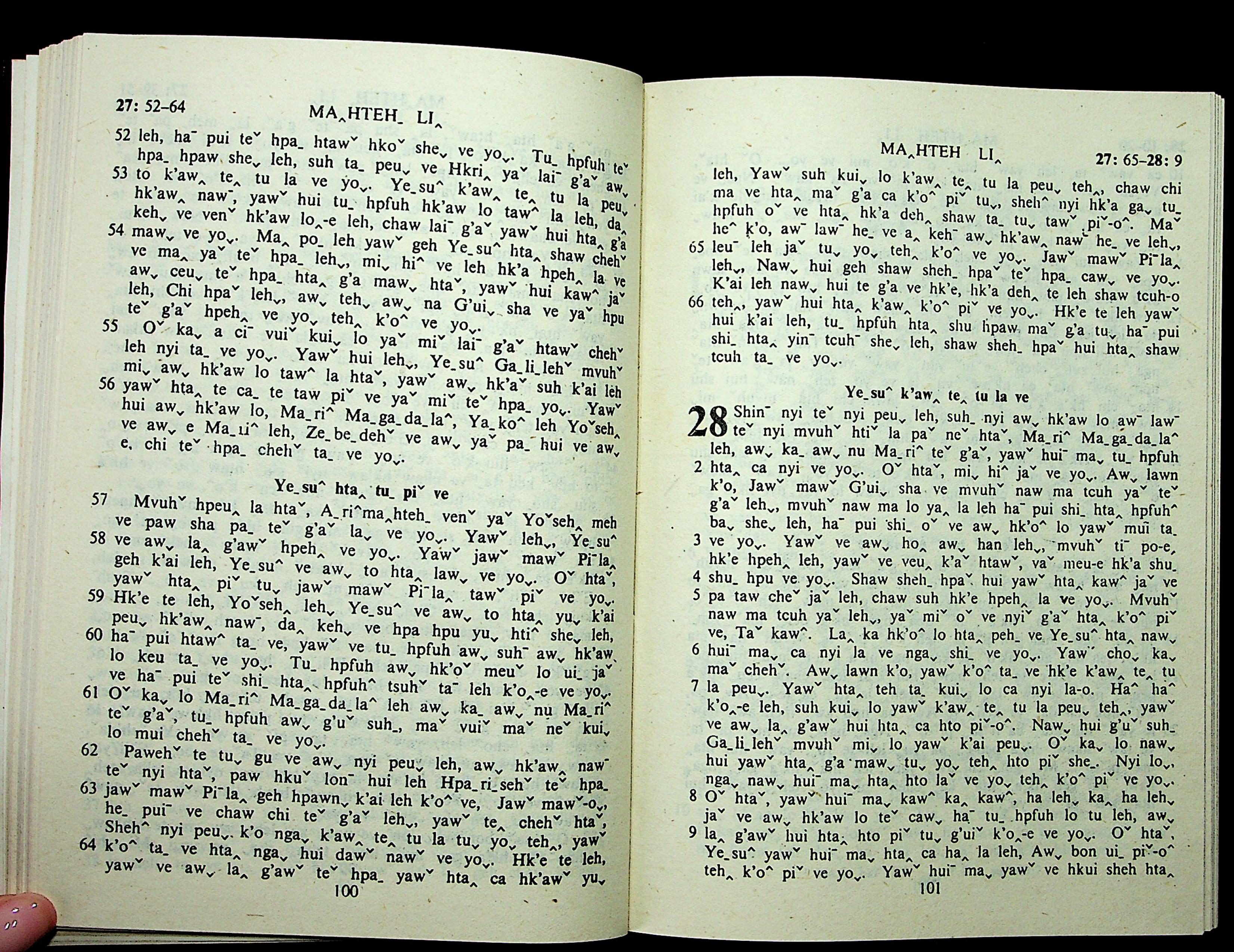 1985年拉祜文新約全書 馬太福音 27 章 52 節到 28 章 9 節