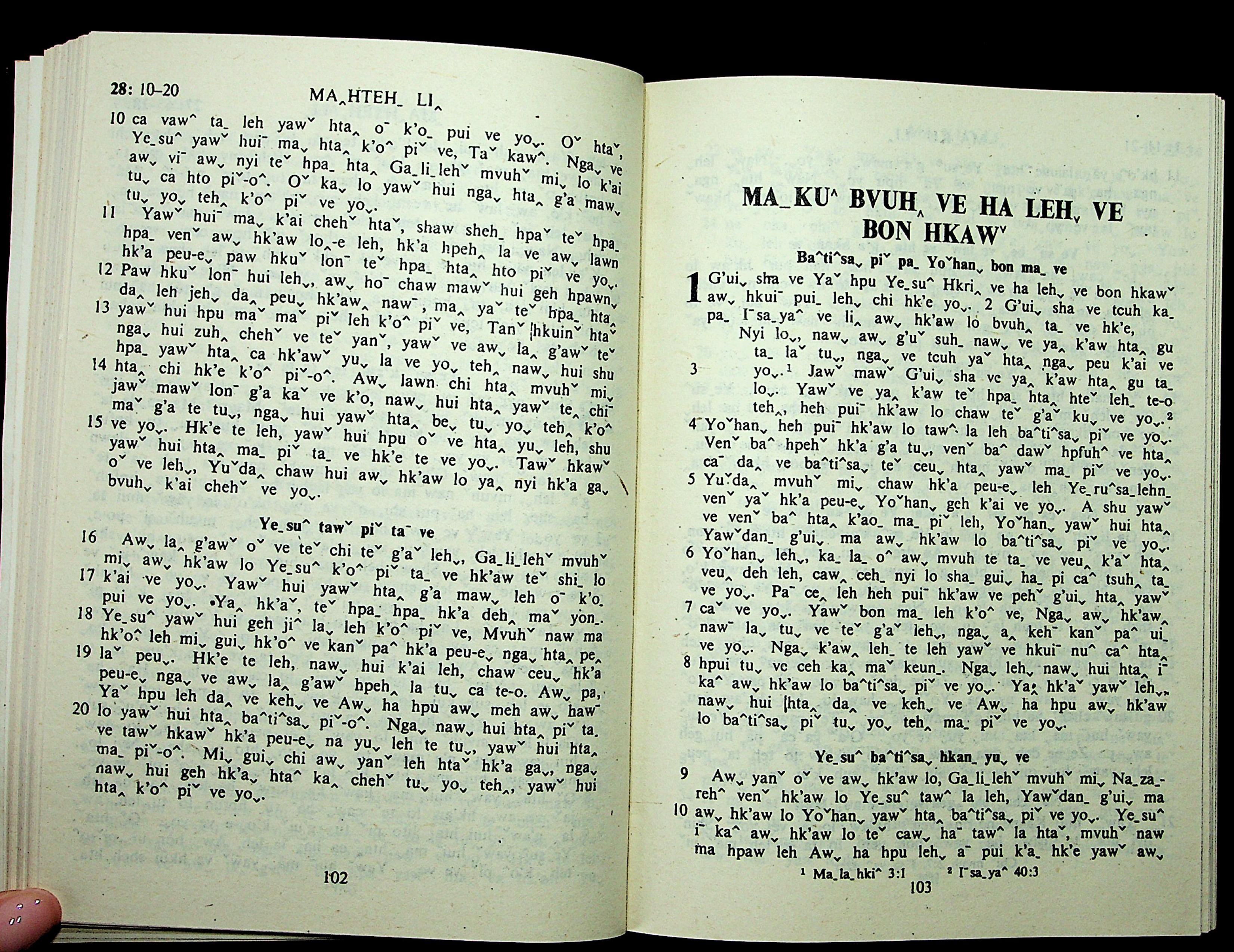 1985年拉祜文新約全書 馬可福音 1 章 1 節到 1 章 10 節