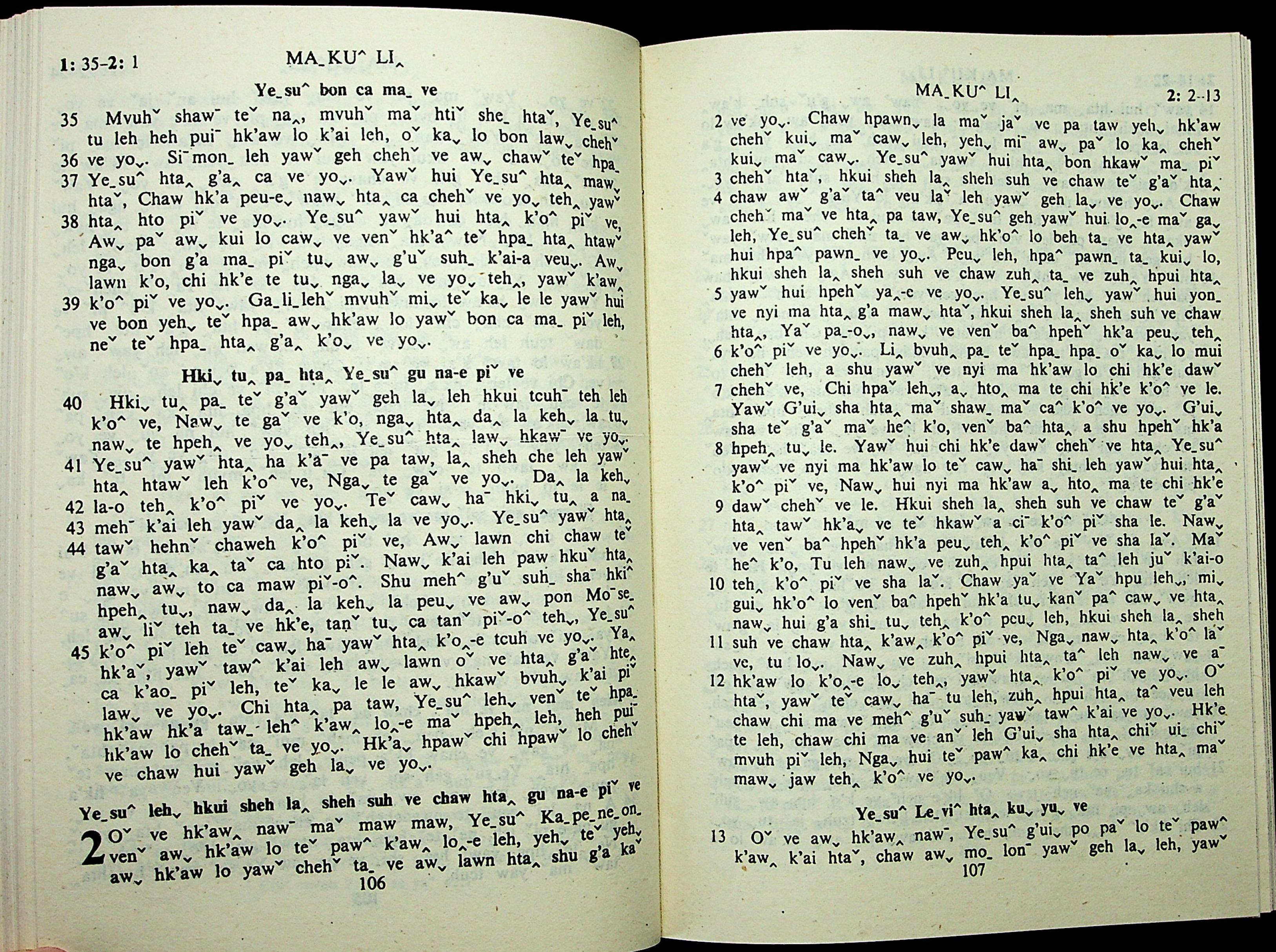 1985年拉祜文新約全書 馬可福音 1 章 35 節到 2 章 13 節