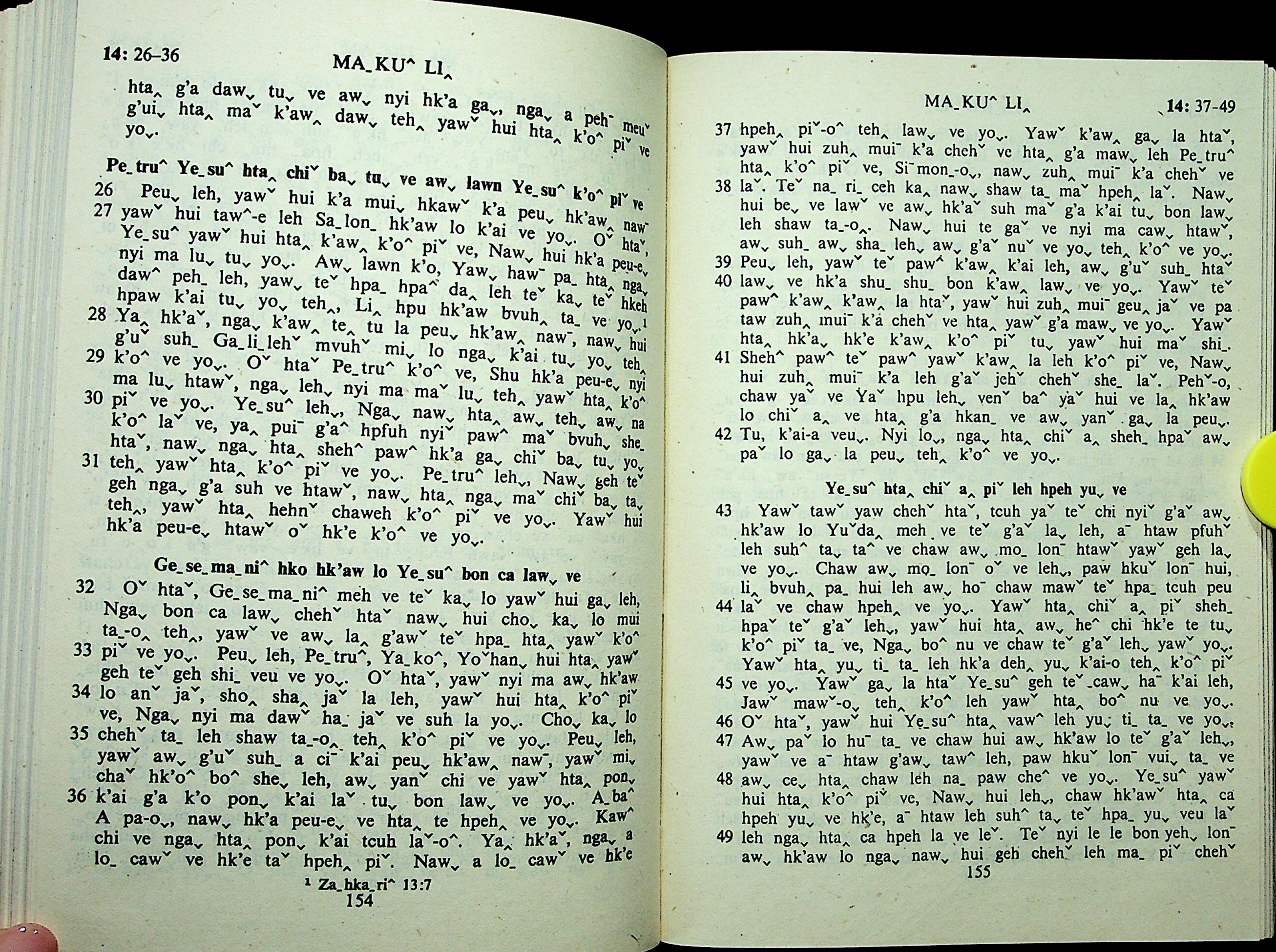 1985年拉祜文新約全書 馬可福音 14 章 26 節到 14 章 49 節