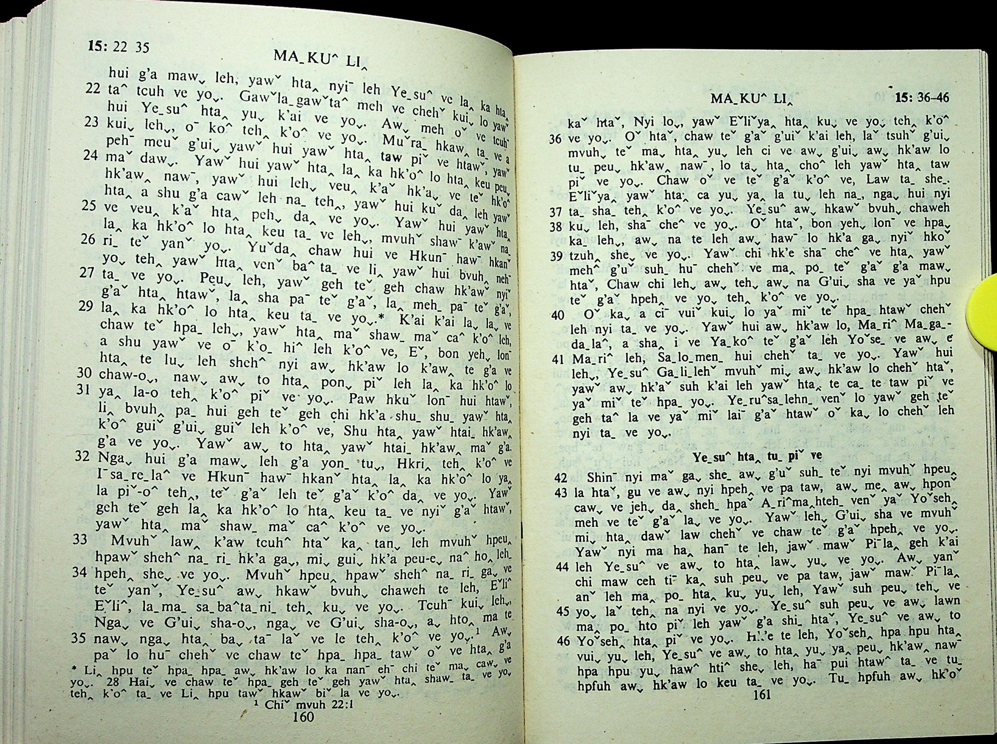 1985年拉祜文新約全書 馬可福音 15 章 22 節到 15 章 46 節