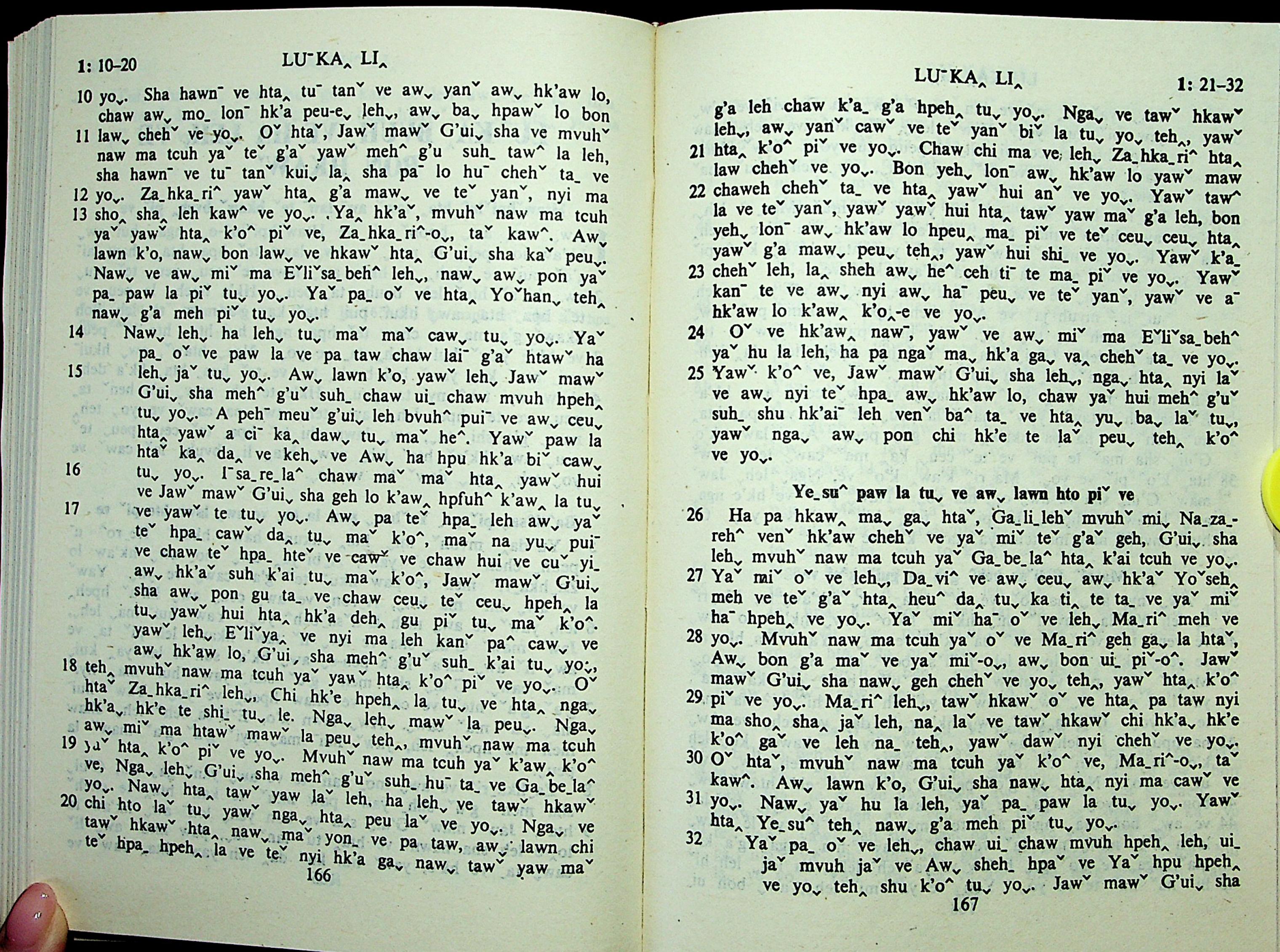 1985年拉祜文新約全書 路加福音 1 章 10 節到 1 章 32 節