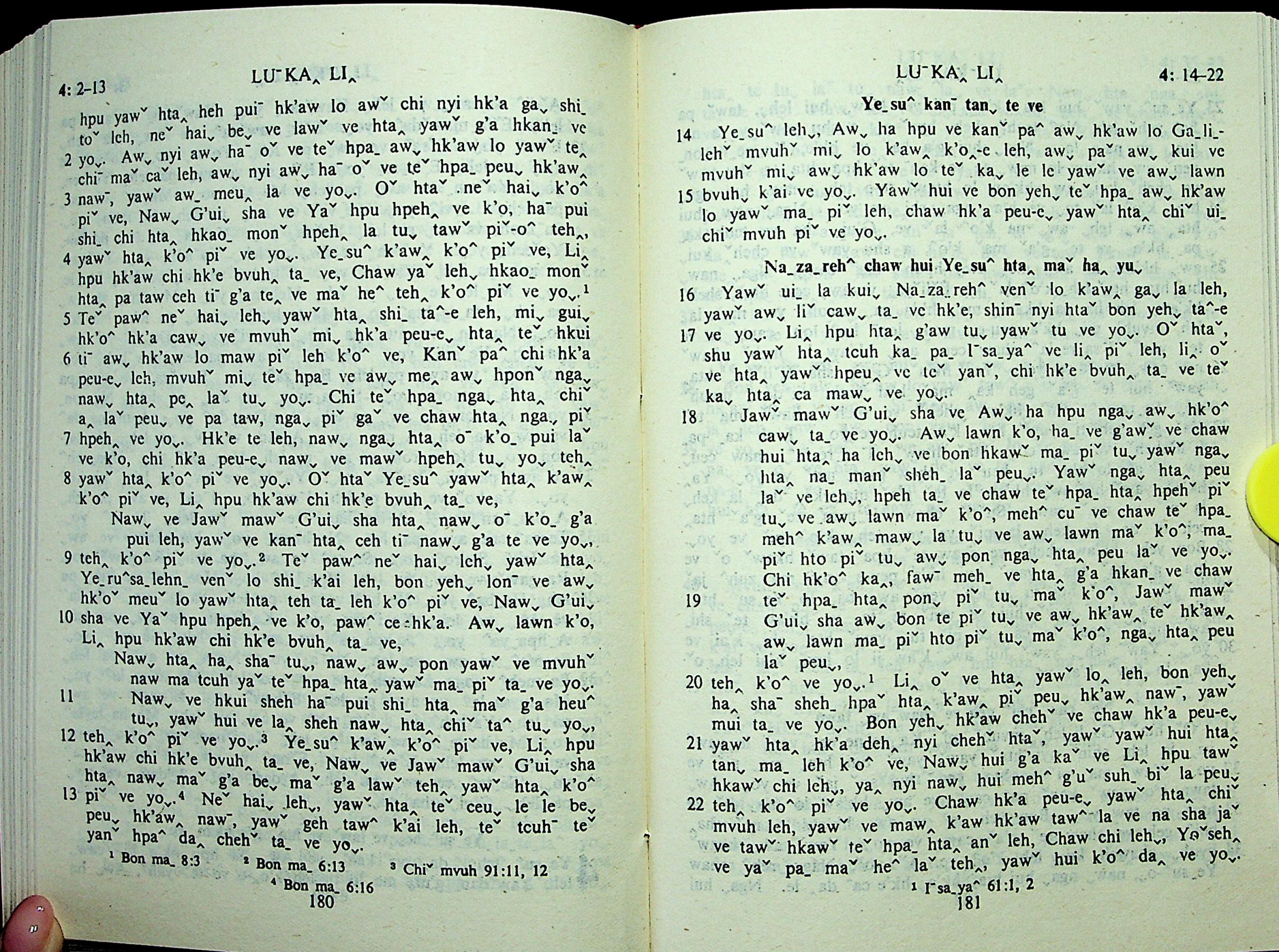 1985年拉祜文新約全書 路加福音 4 章 2 節到 4 章 22 節