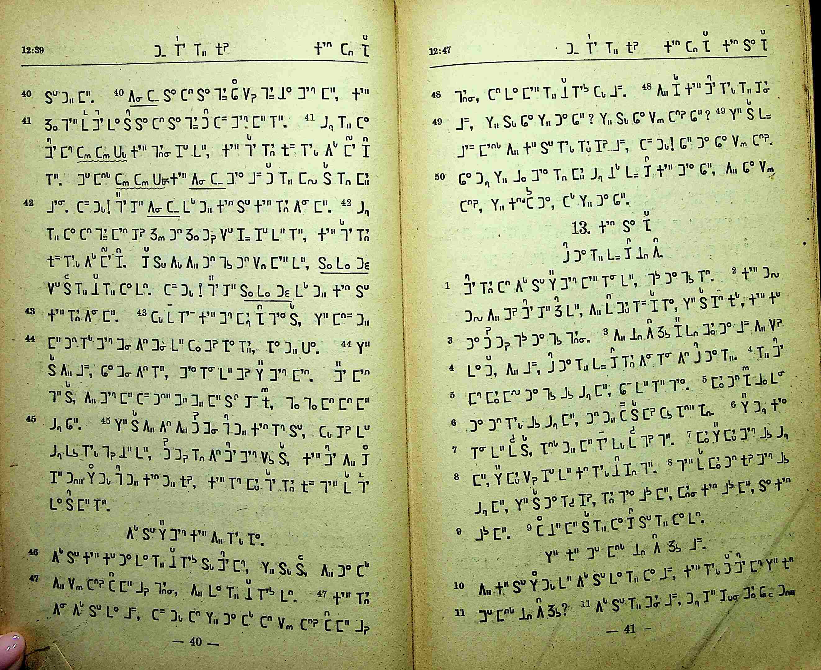 1951年東栗僳新約 馬太福音 12 章 40 節到 13 章 11 節