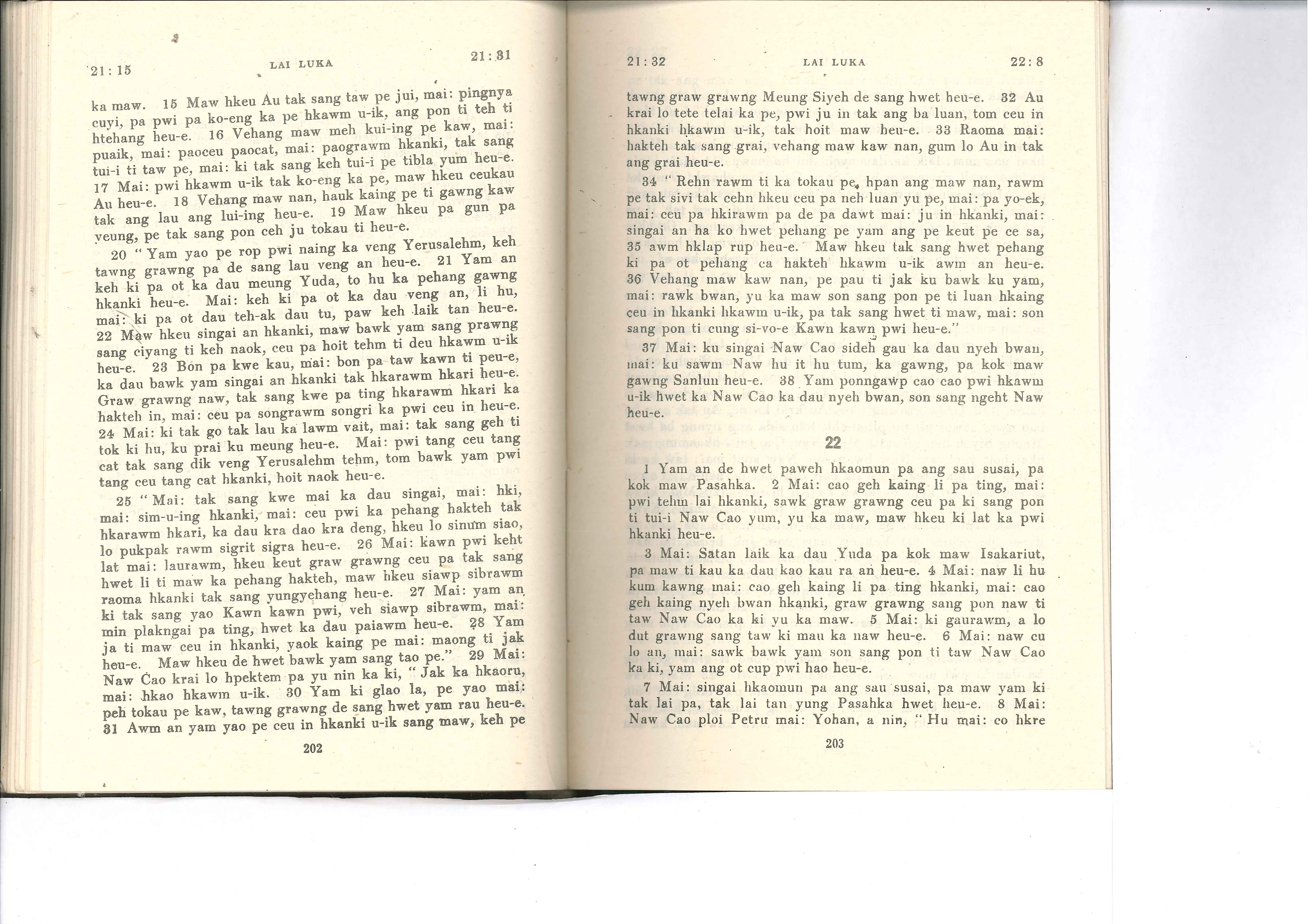 1985年佤文新約全書 路加福音 21 章 15 節到 22 章 8 節