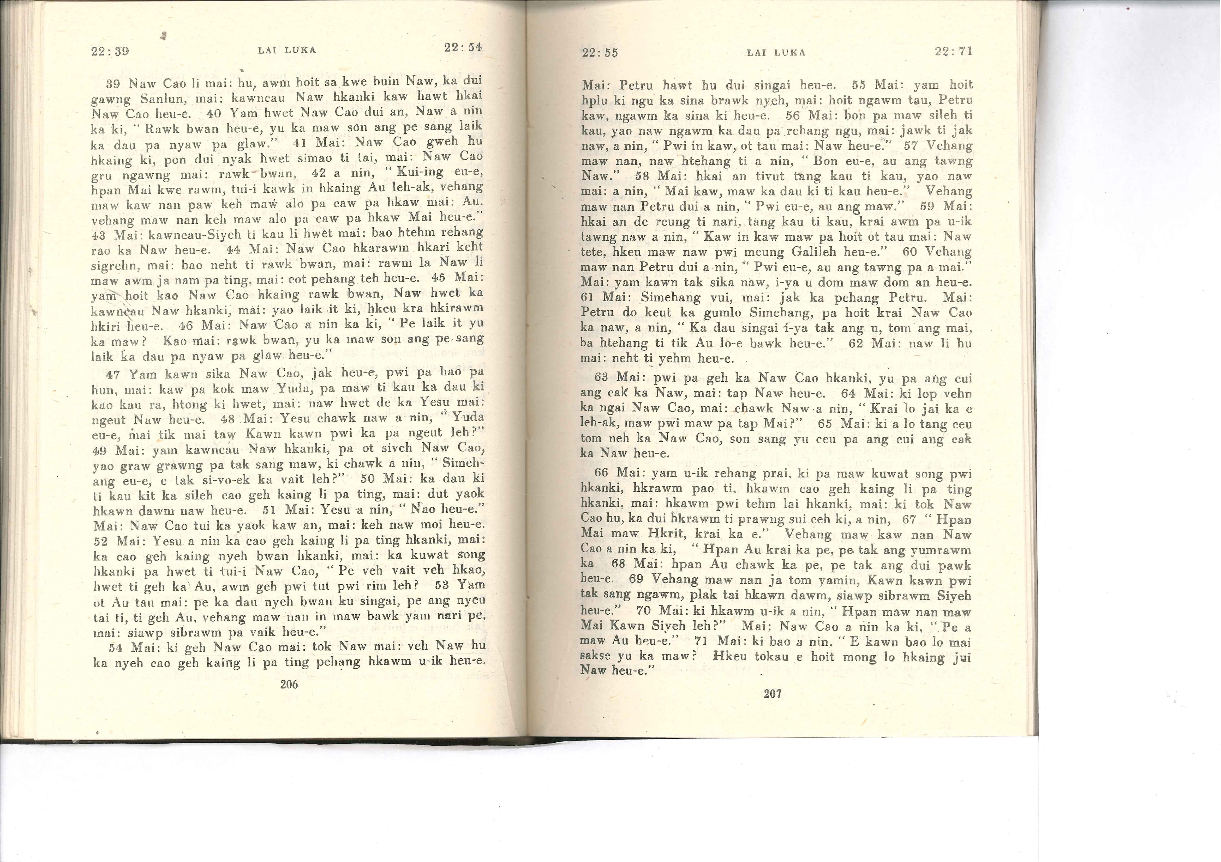 1985年佤文新約全書 路加福音 22 章 39 節到 22 章 71 節