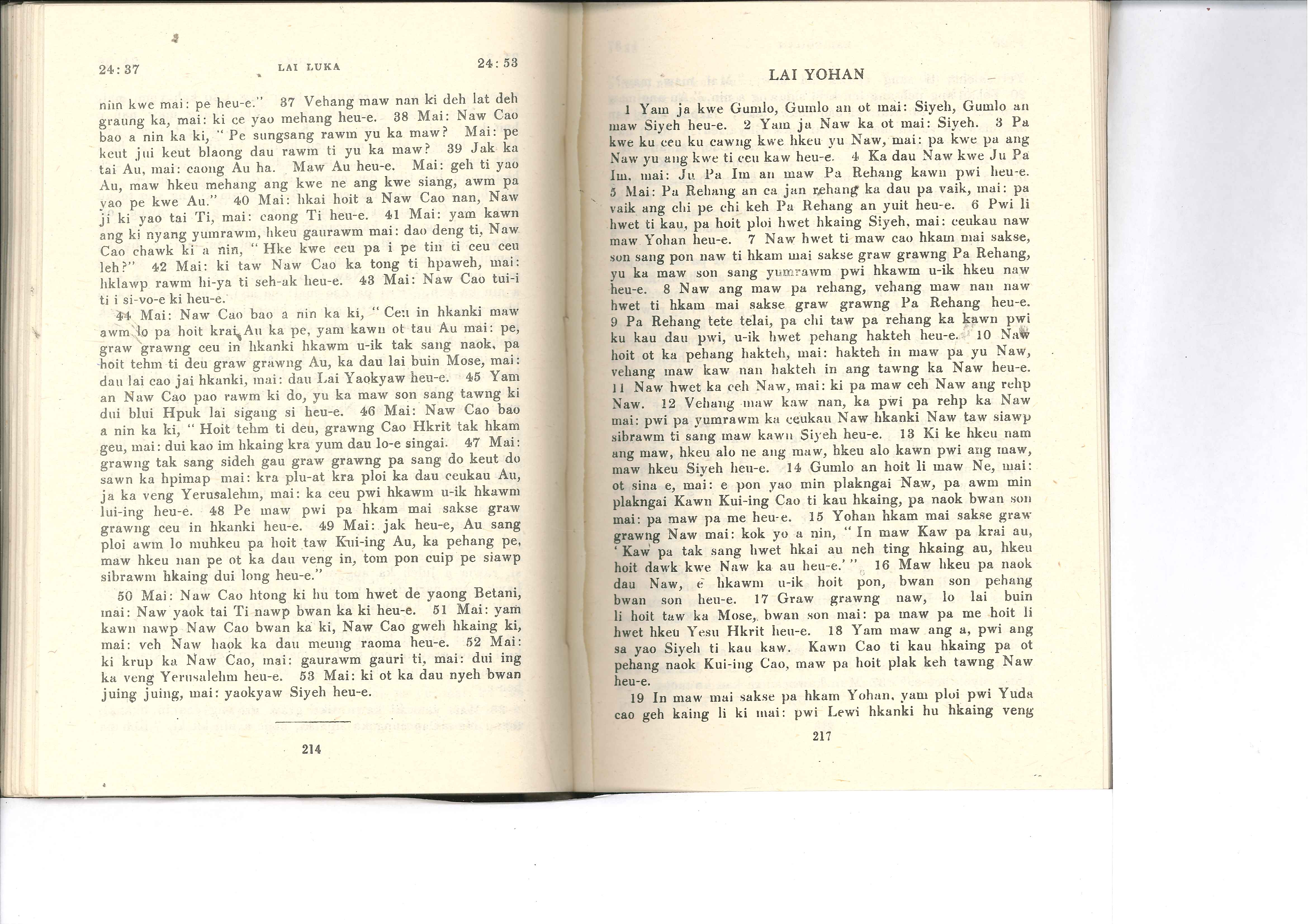 1985年佤文新約全書 路加福音 24 章 37 節到 24 章 53 節