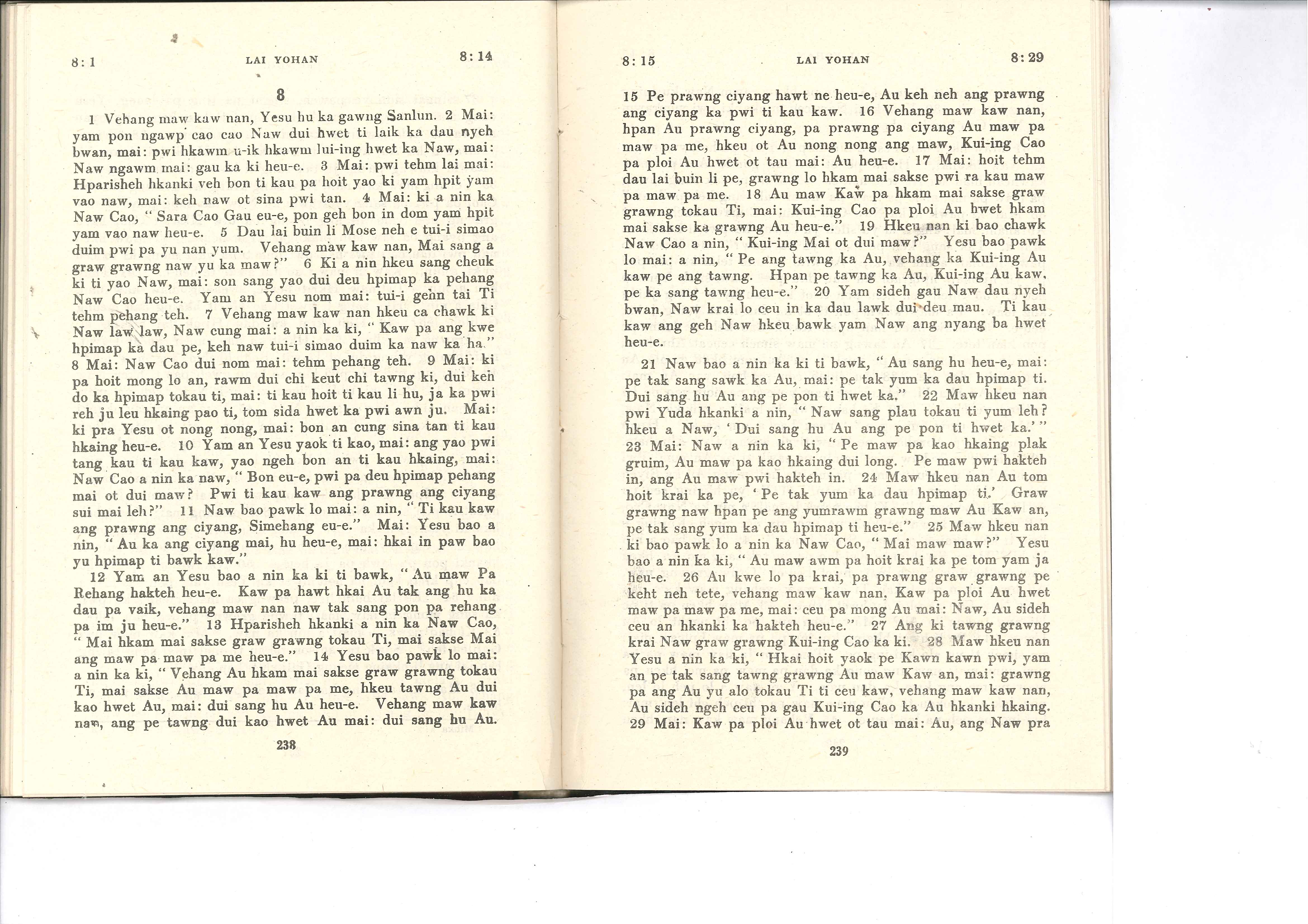 1985年佤文新約全書 約翰福音 8 章 1 節到 8 章 29 節