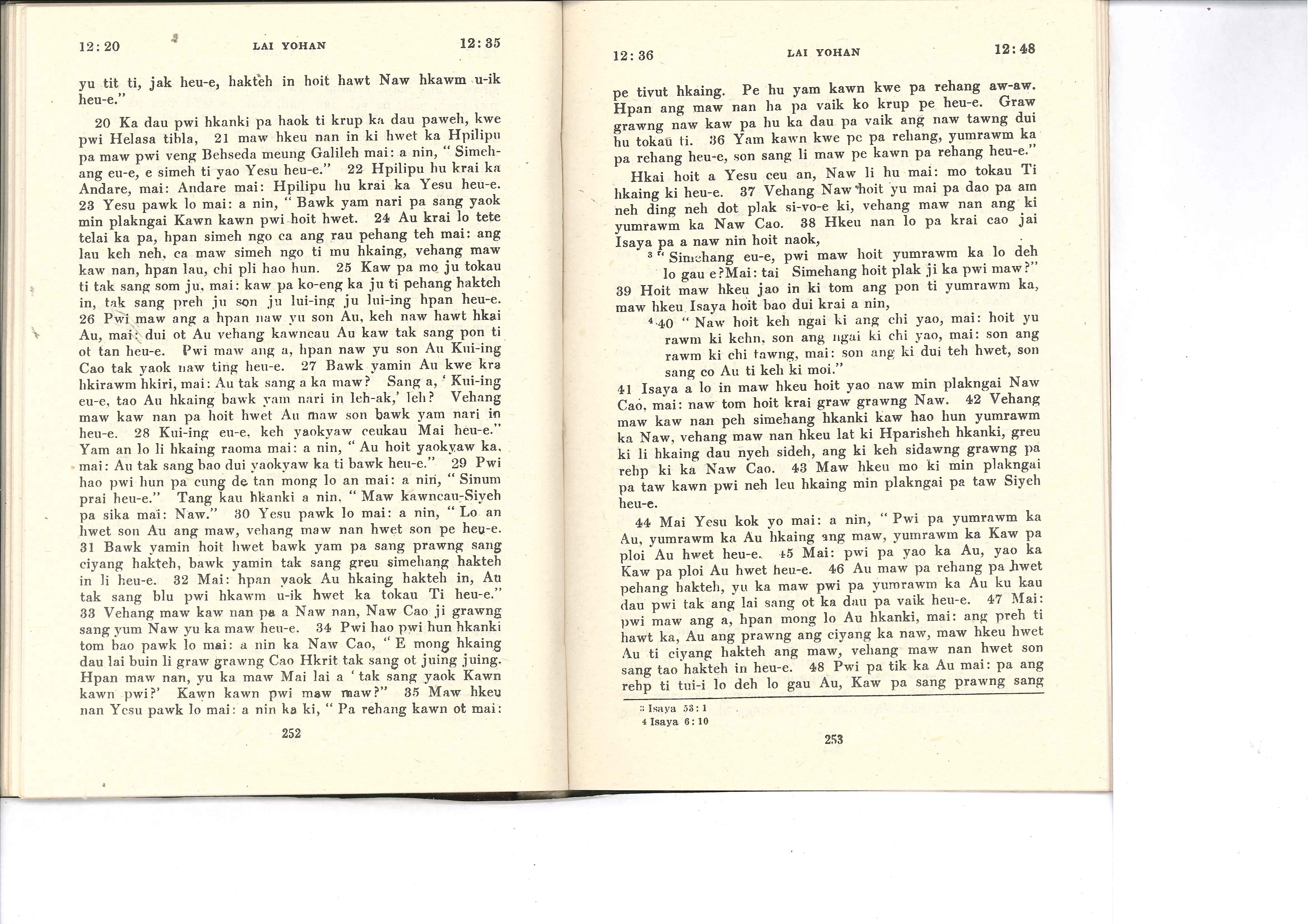 1985年佤文新約全書 約翰福音 12 章 20 節到 12 章 48 節