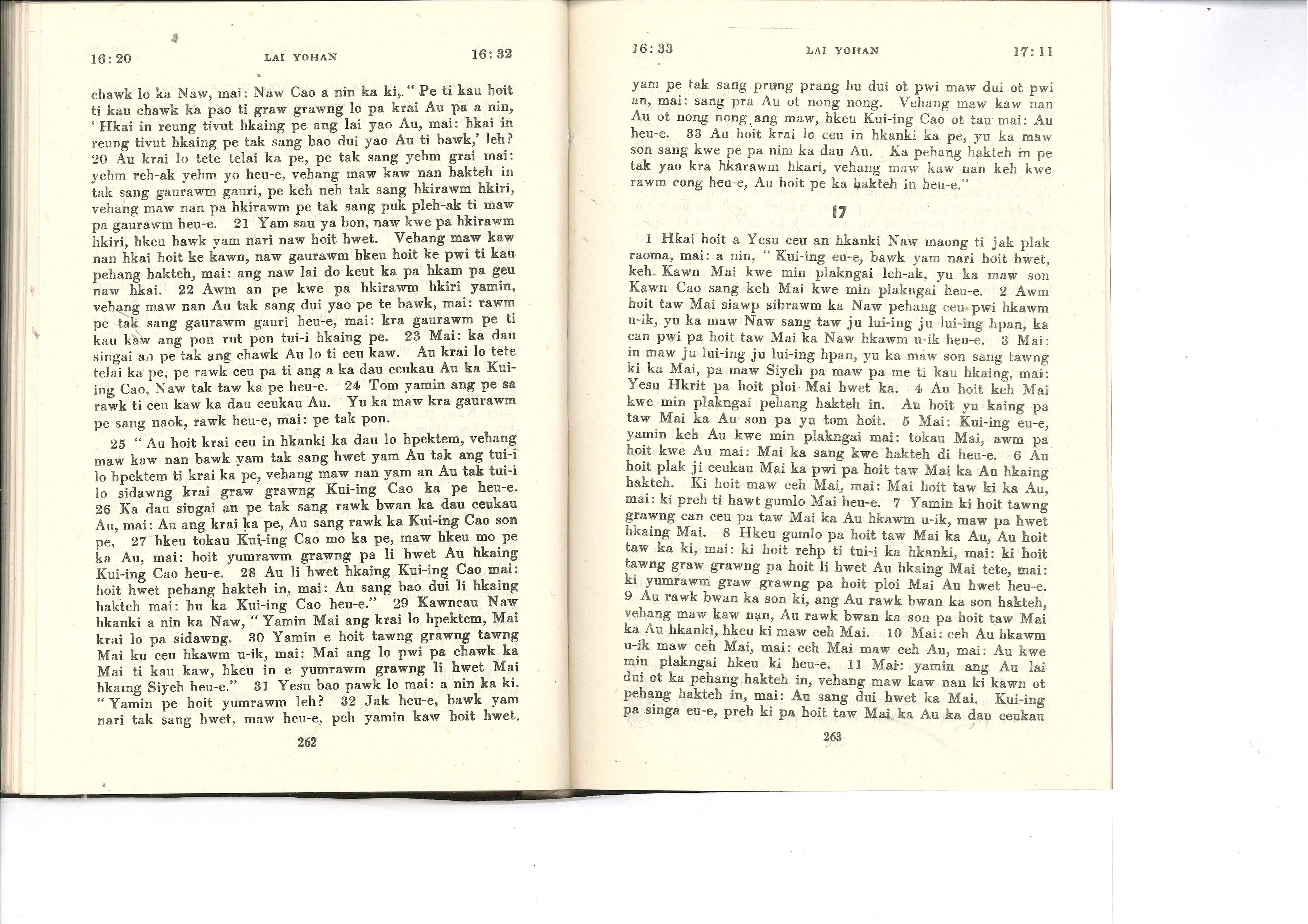 1985年佤文新約全書 約翰福音 16 章 20 節到 17 章 11 節