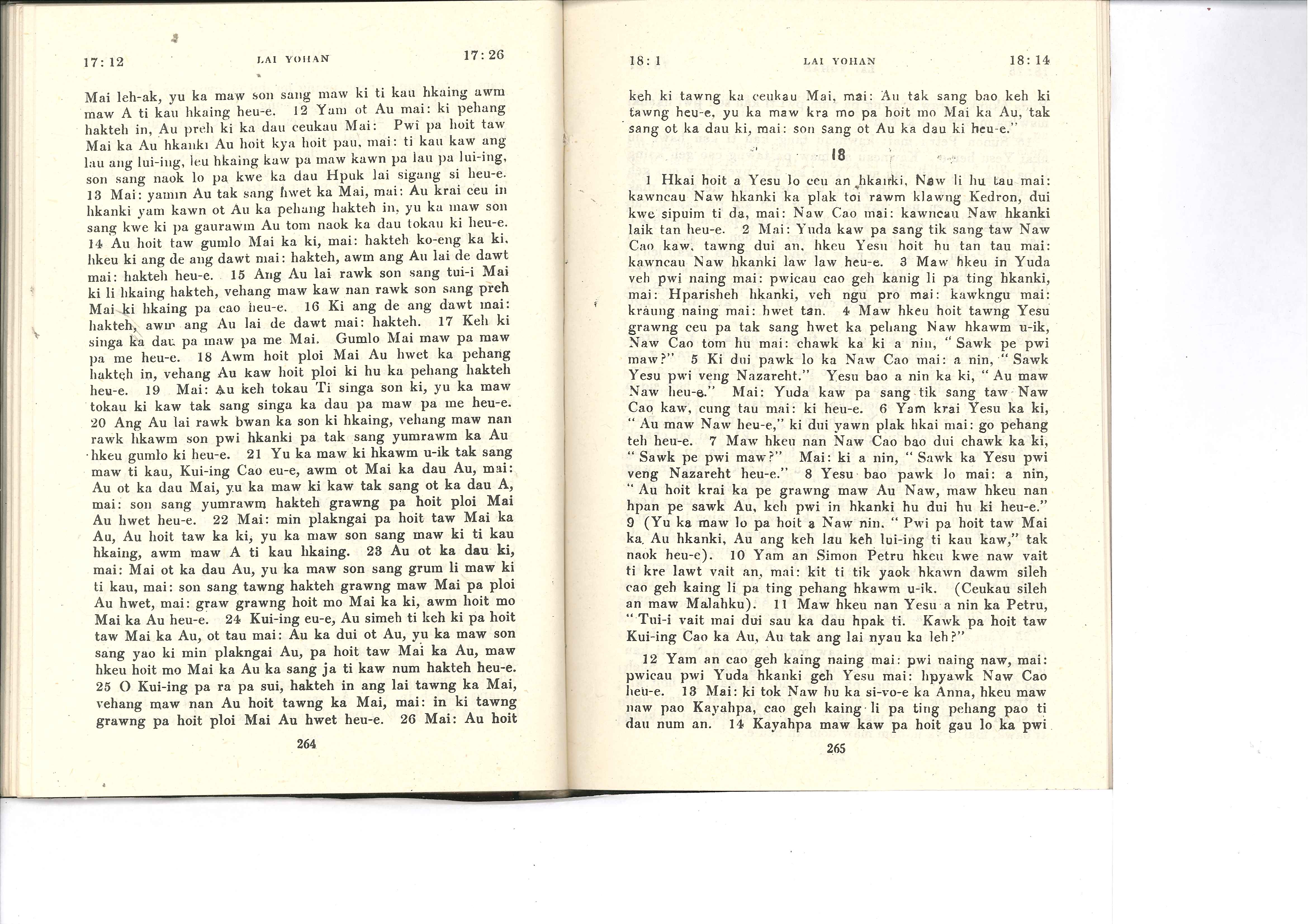 1985年佤文新約全書 約翰福音 17 章 12 節到 18 章 14 節