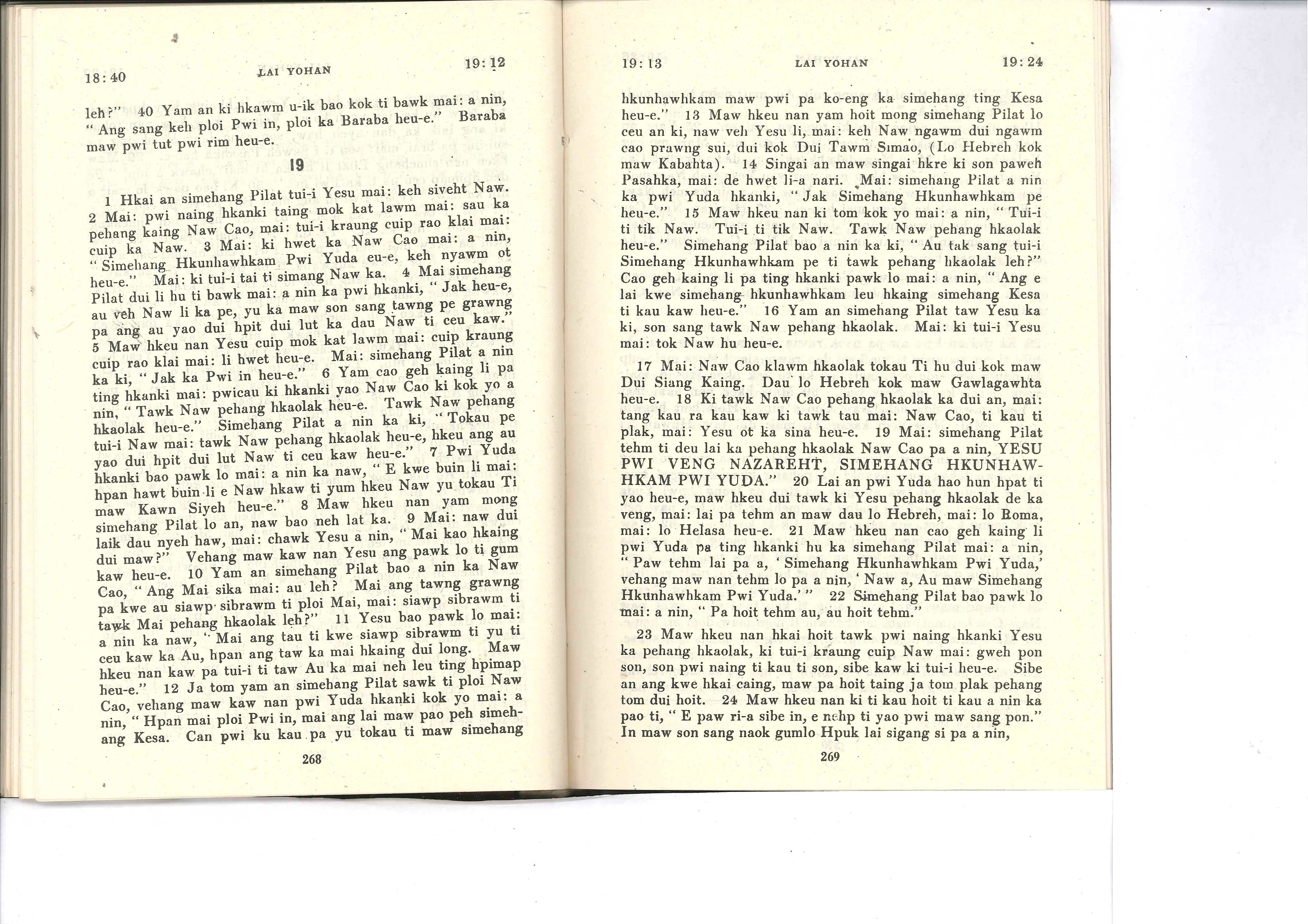 1985年佤文新約全書 約翰福音 18 章 40 節到 19 章 24 節