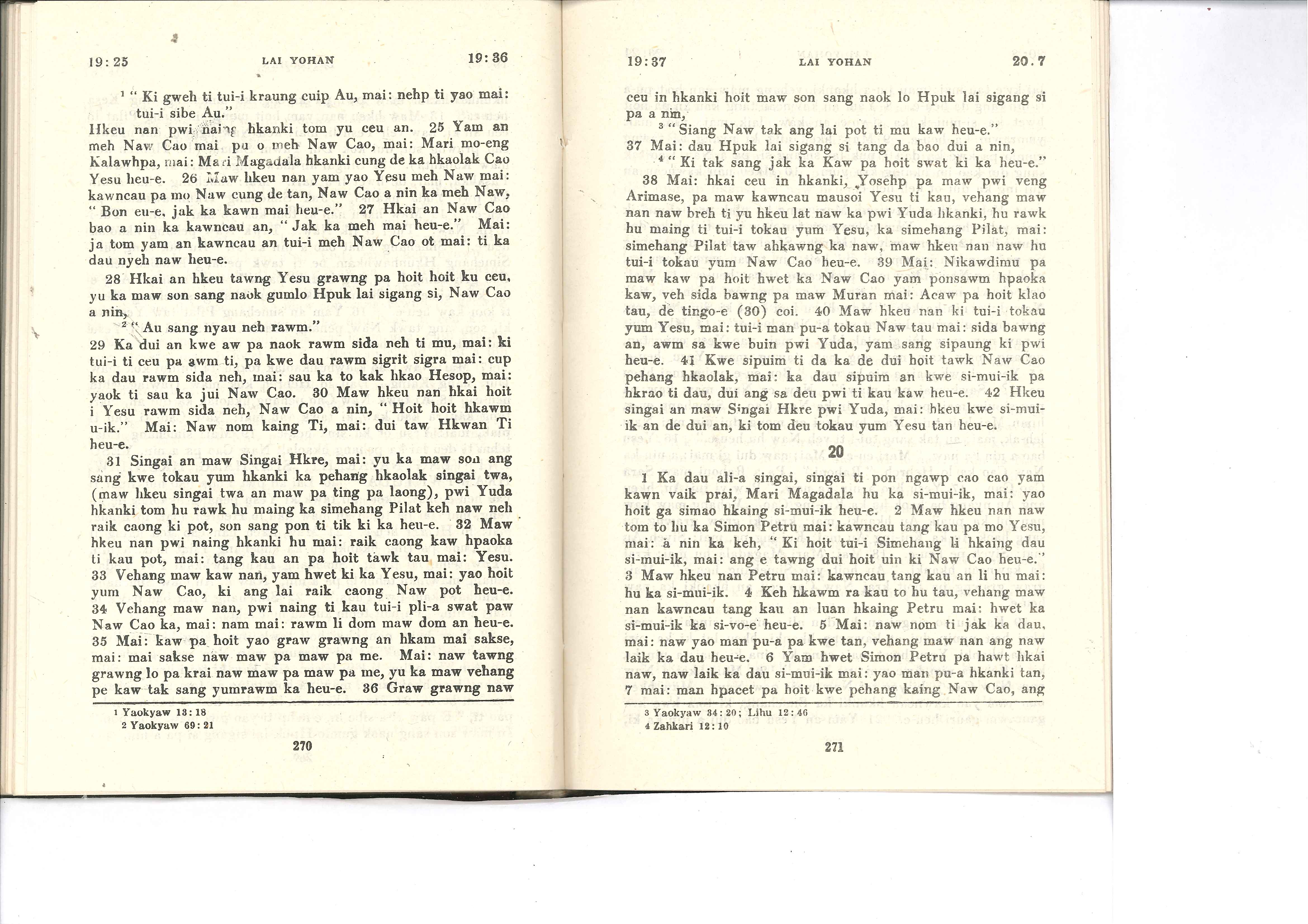 1985年佤文新約全書 約翰福音 19 章 25 節到 20 章 7 節