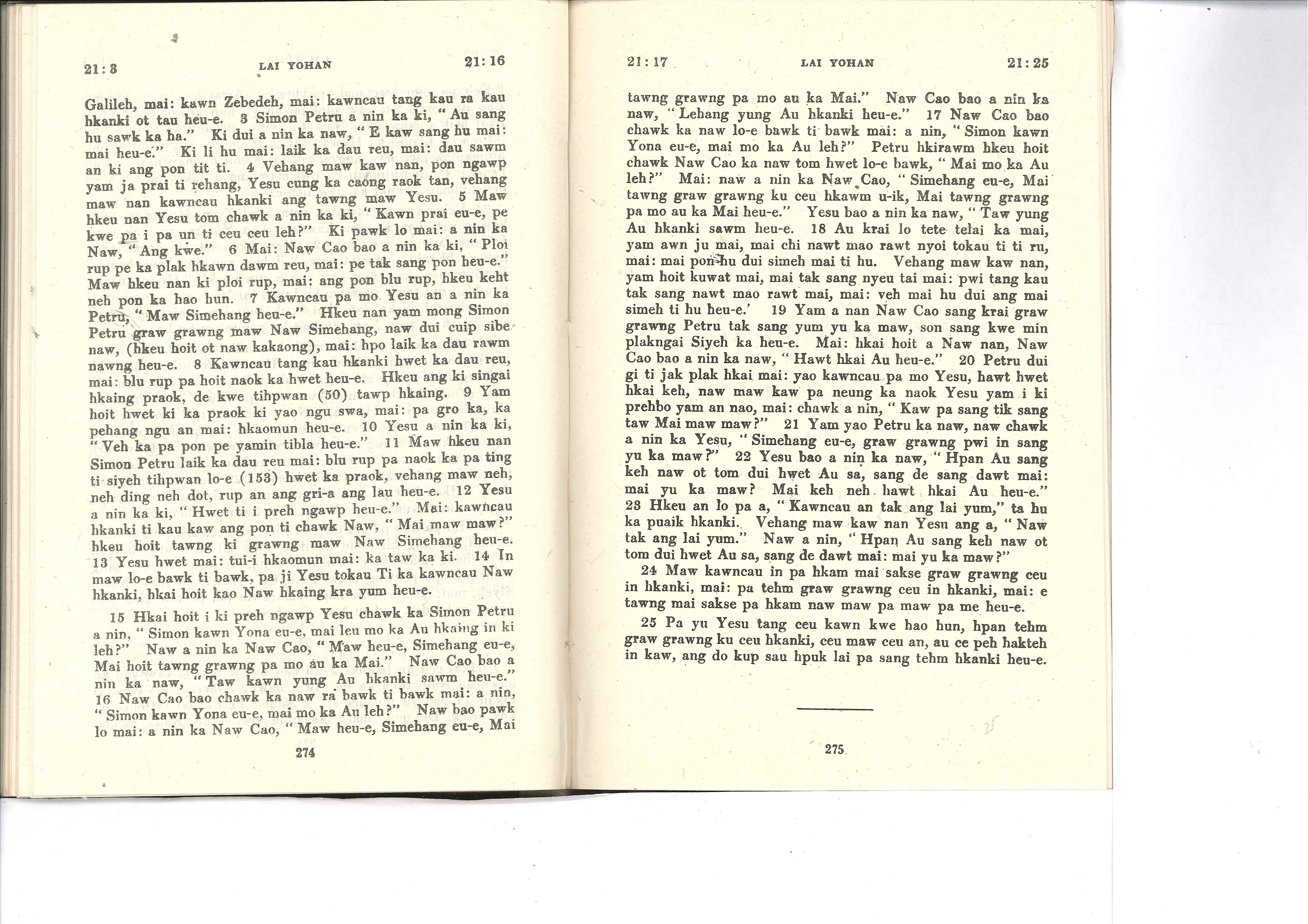 1985年佤文新約全書 約翰福音 21 章 3 節到 21 章 25 節