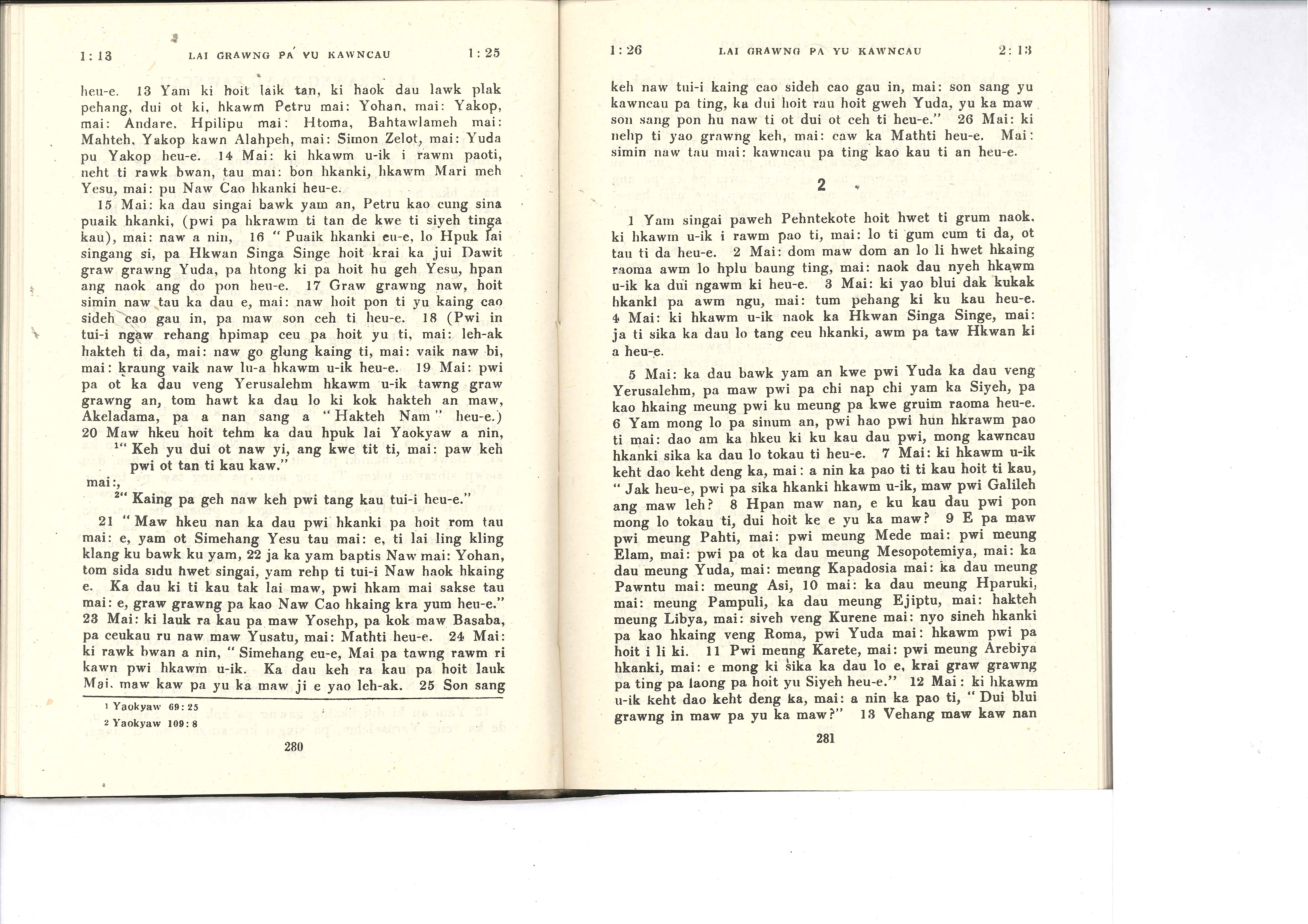1985年佤文新約全書 使徒行傳 1 章 13 節到 2 章 13 節