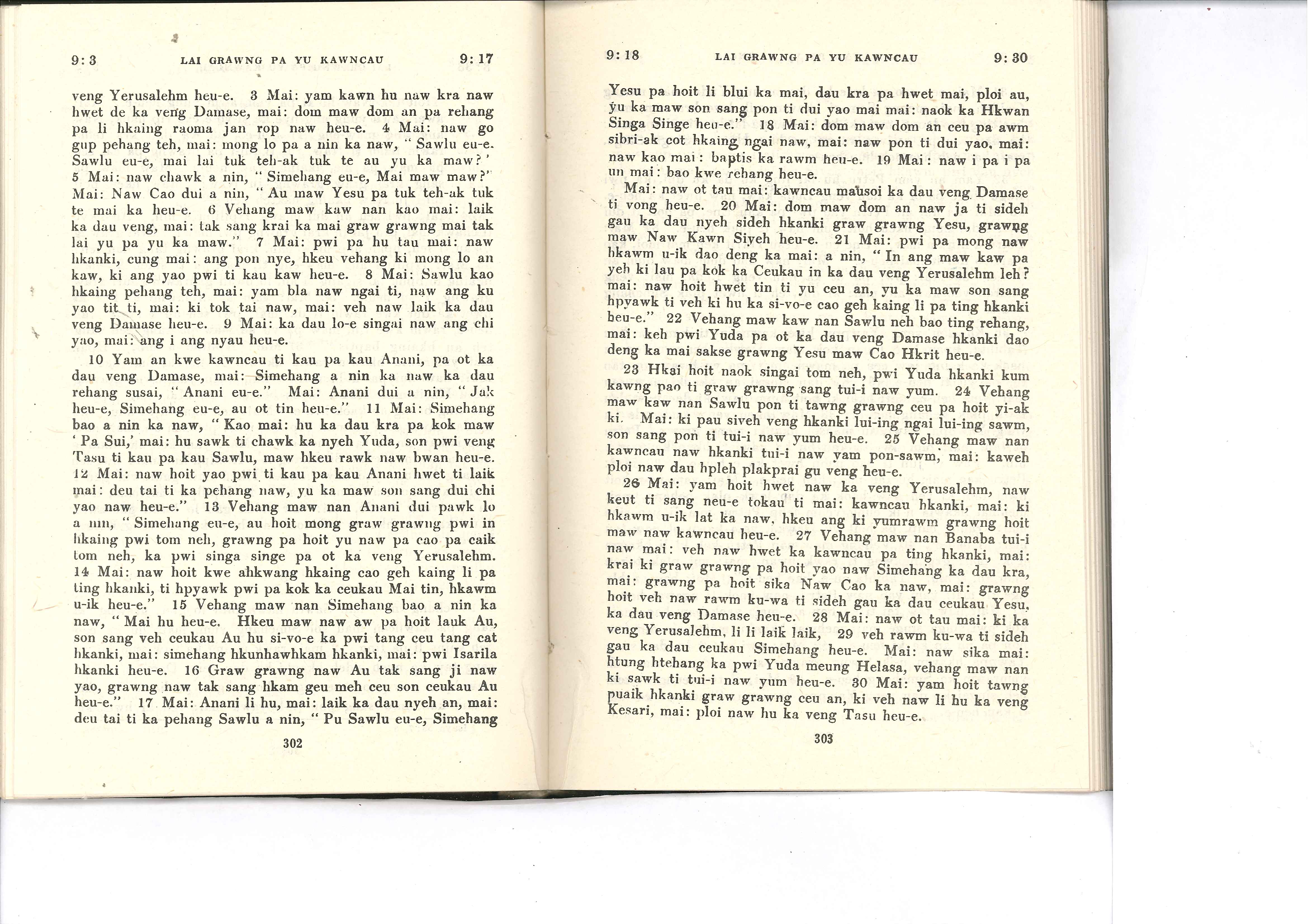 1985年佤文新約全書 使徒行傳 9 章 3 節到 9 章 30 節