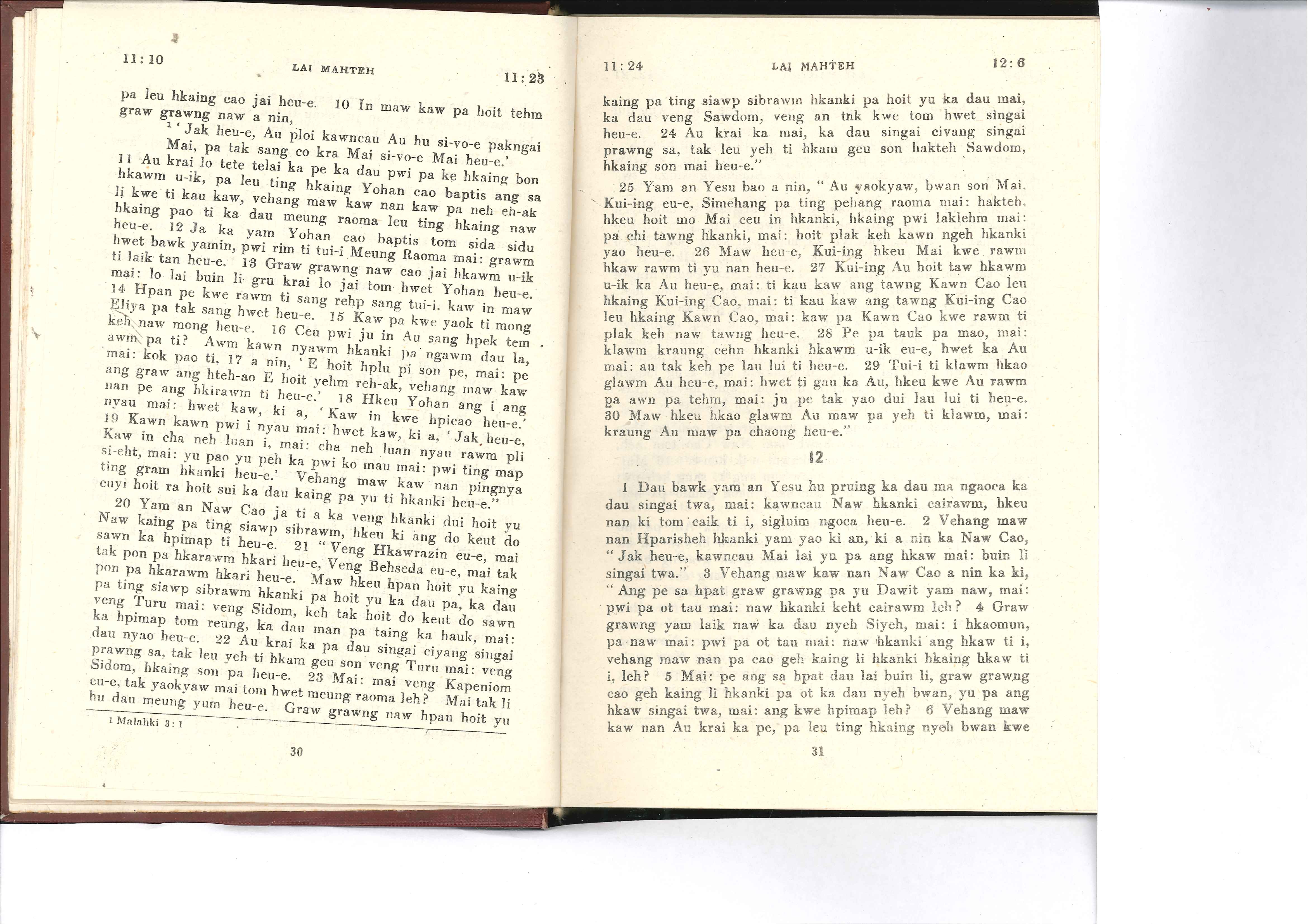 1985年佤文新約全書 馬太福音 11 章 10 節到 12 章 6 節
