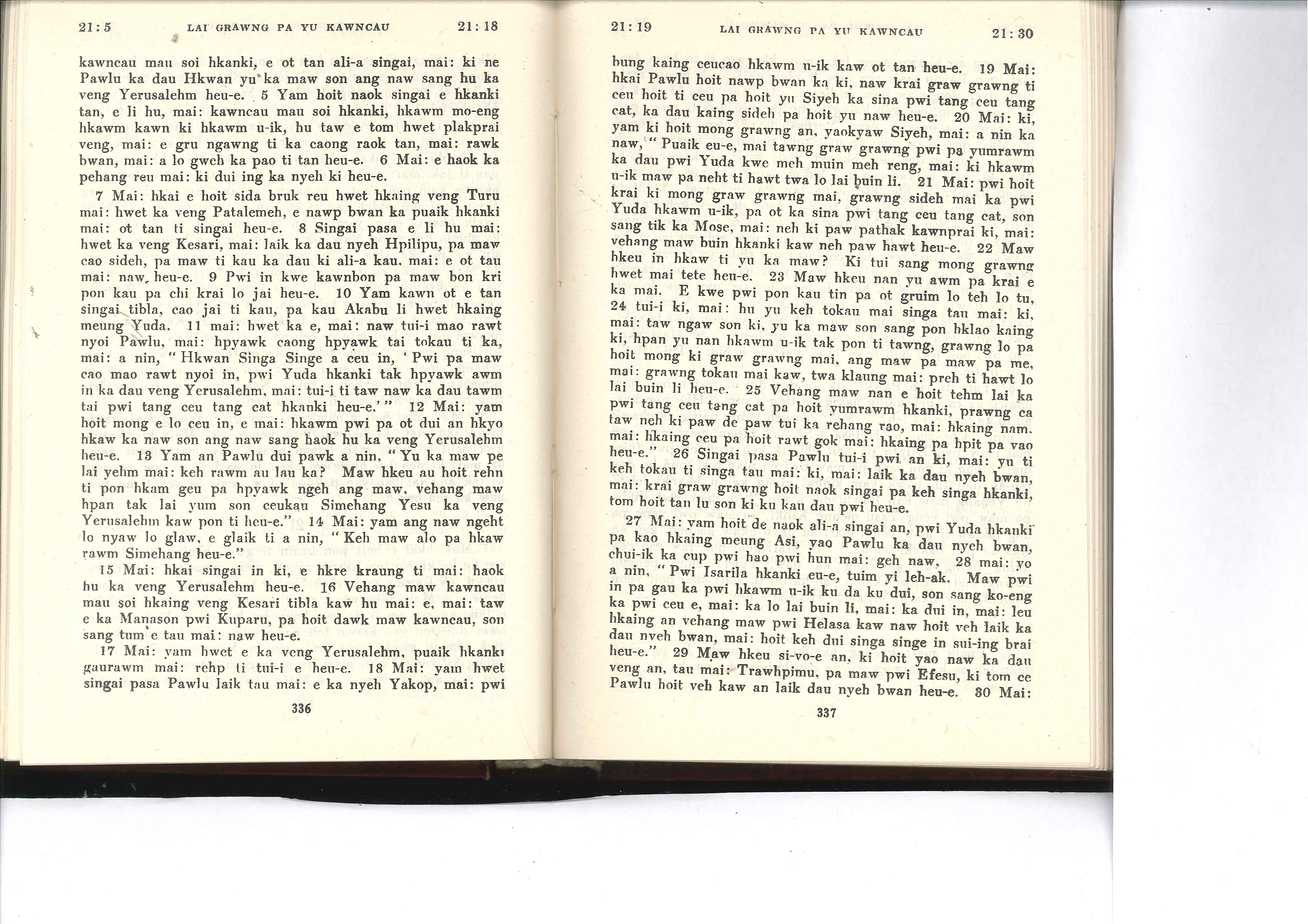 1985年佤文新約全書 使徒行傳 21 章 5 節到 21 章 30 節