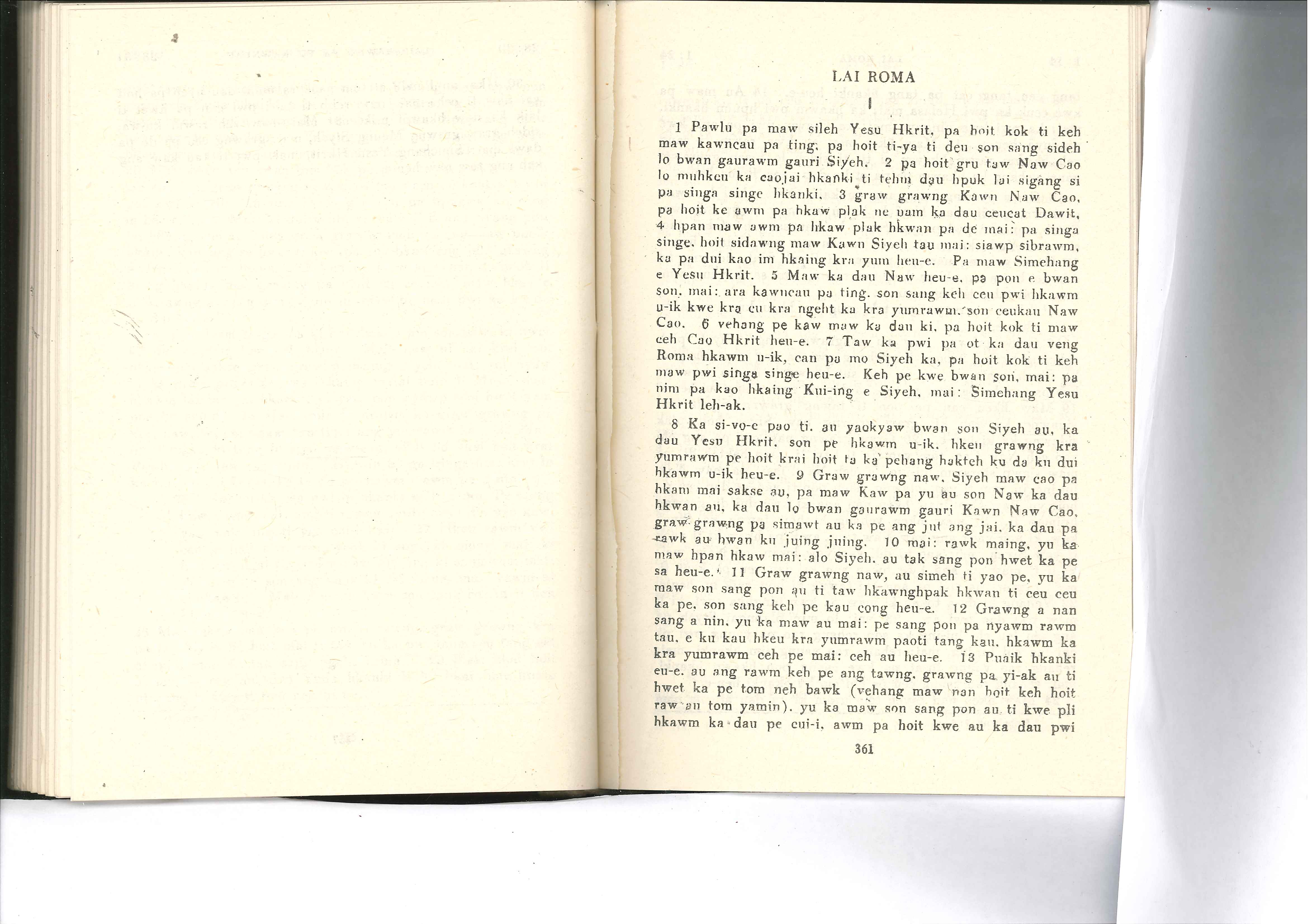 1985年佤文新約全書 羅馬書 1 章 1 節到 1 章 13 節