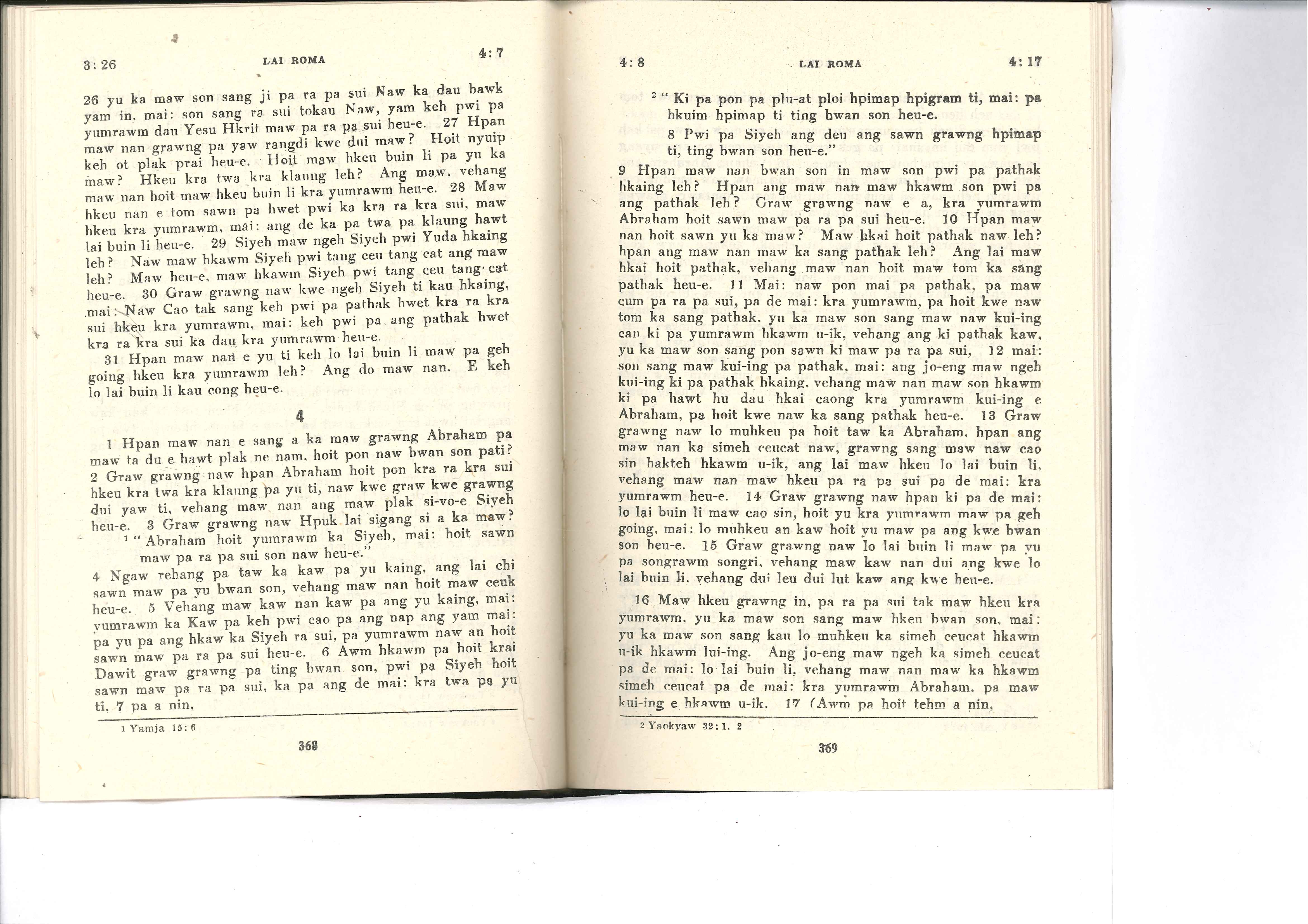 1985年佤文新約全書 羅馬書 3 章 26 節到 4 章 17 節
