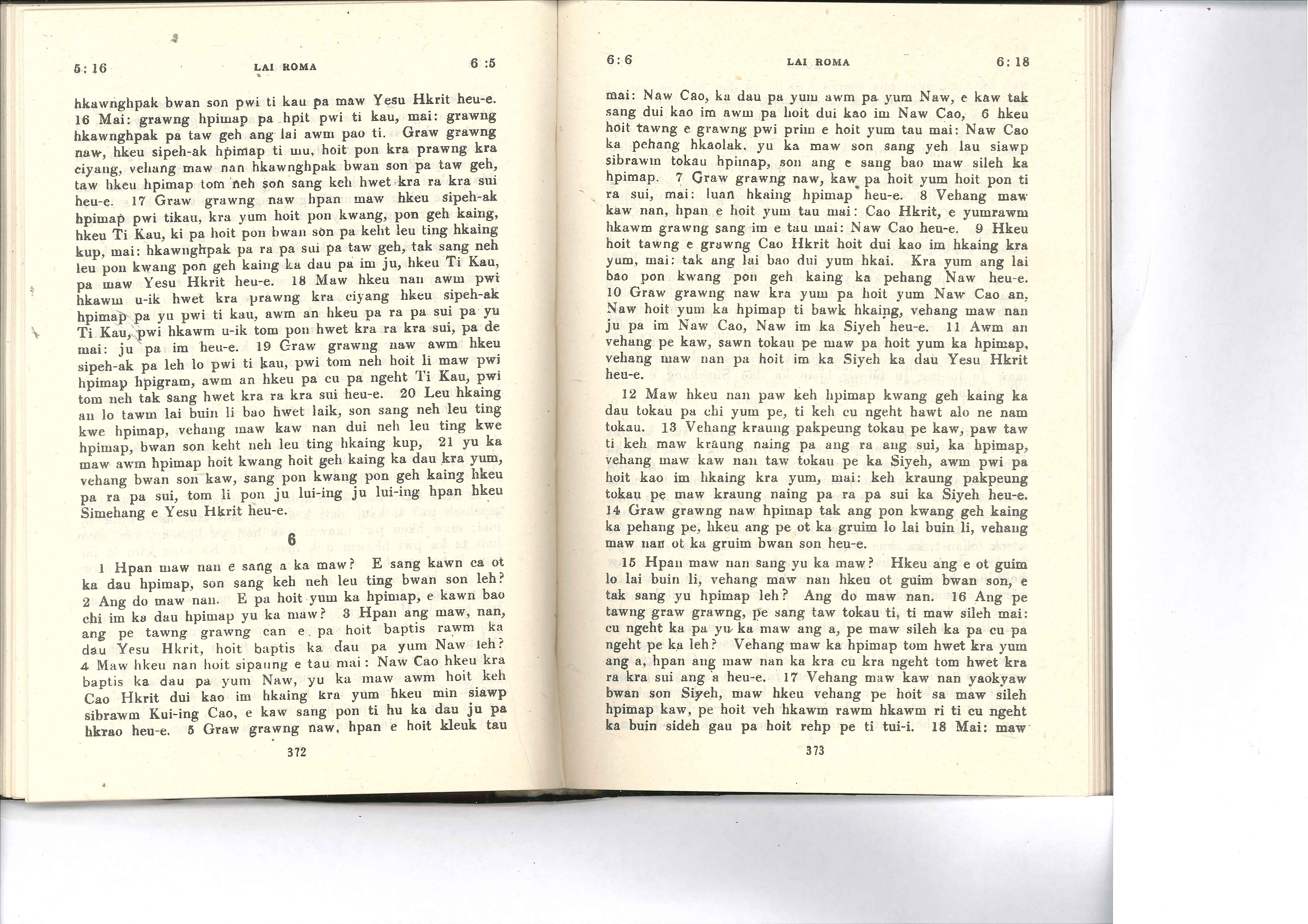 1985年佤文新約全書 羅馬書 5 章 16 節到 6 章 18 節