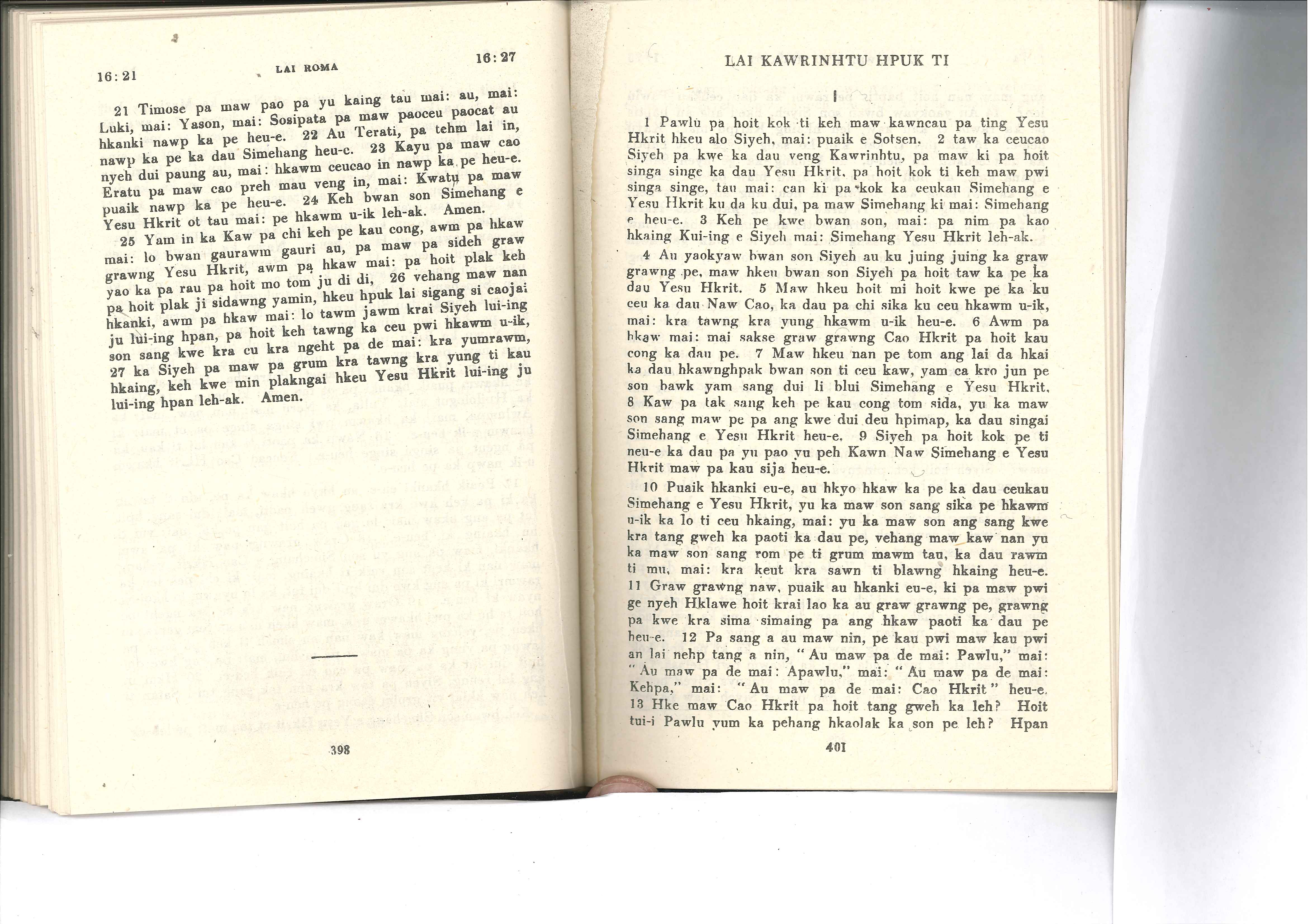 1985年佤文新約全書 哥林多前書 1 章 1 節到 1 章 13 節