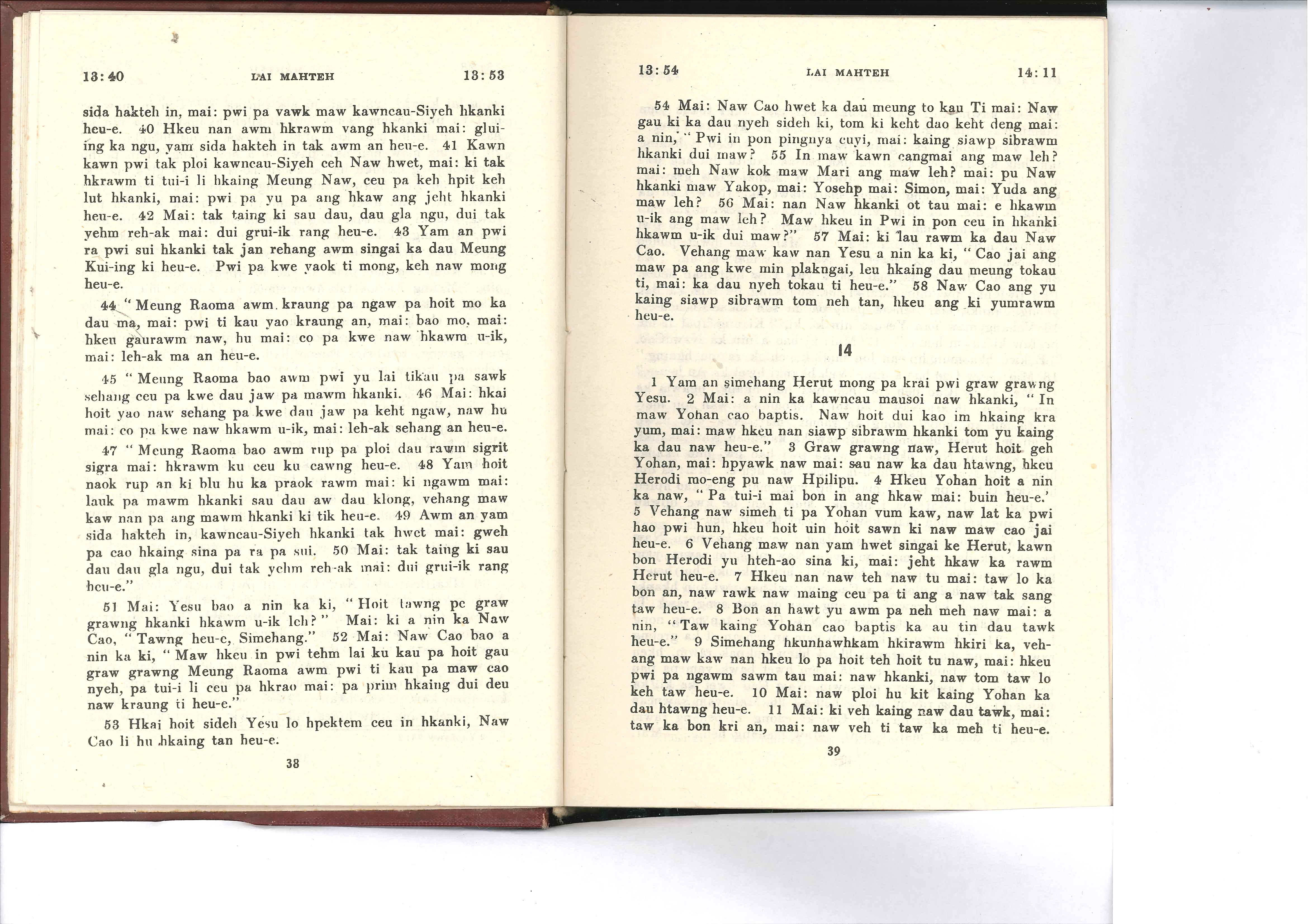 1985年佤文新約全書 馬太福音 13 章 40 節到 14 章 11 節