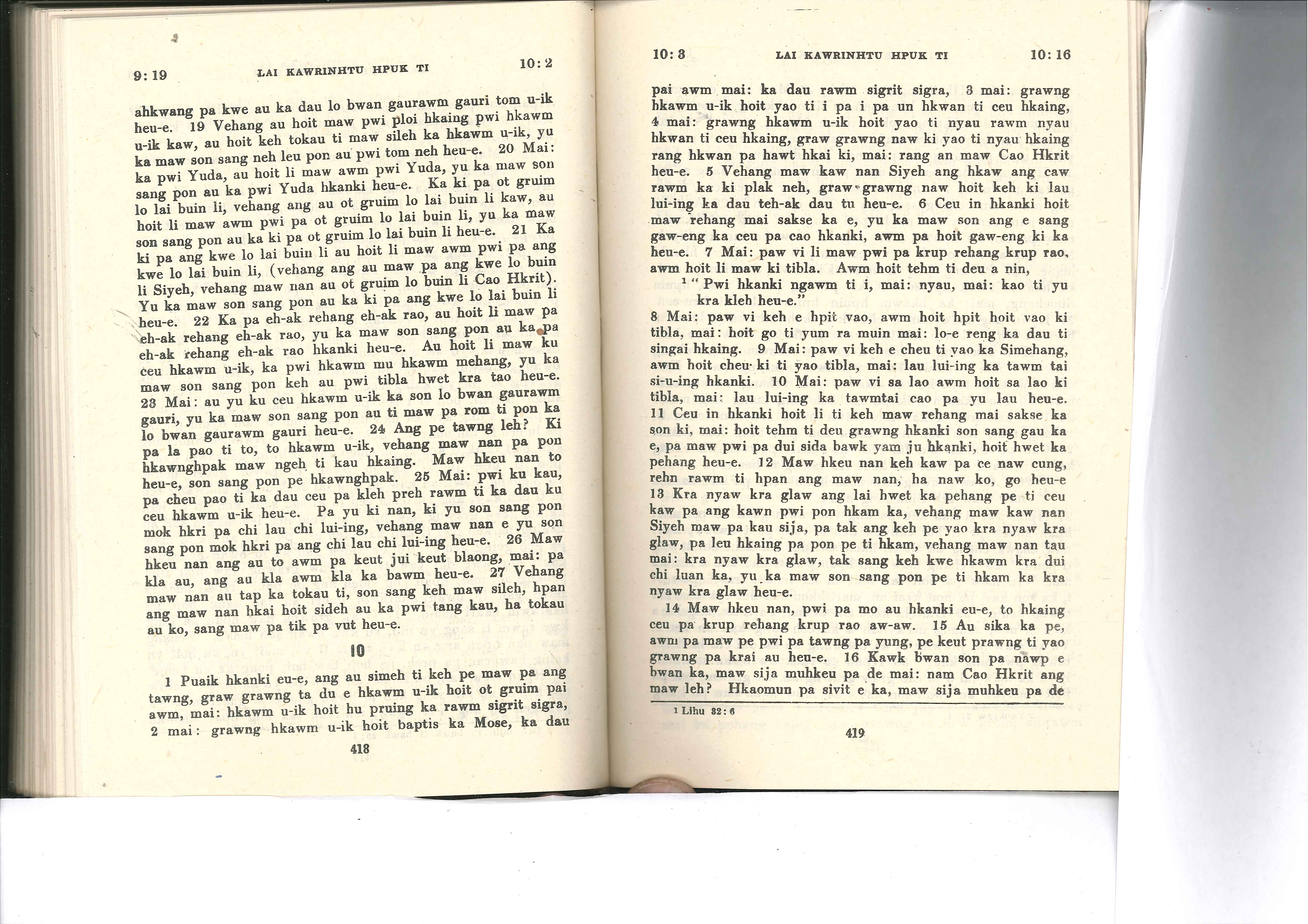 1985年佤文新約全書 哥林多前書 9 章 19 節到 10 章 16 節