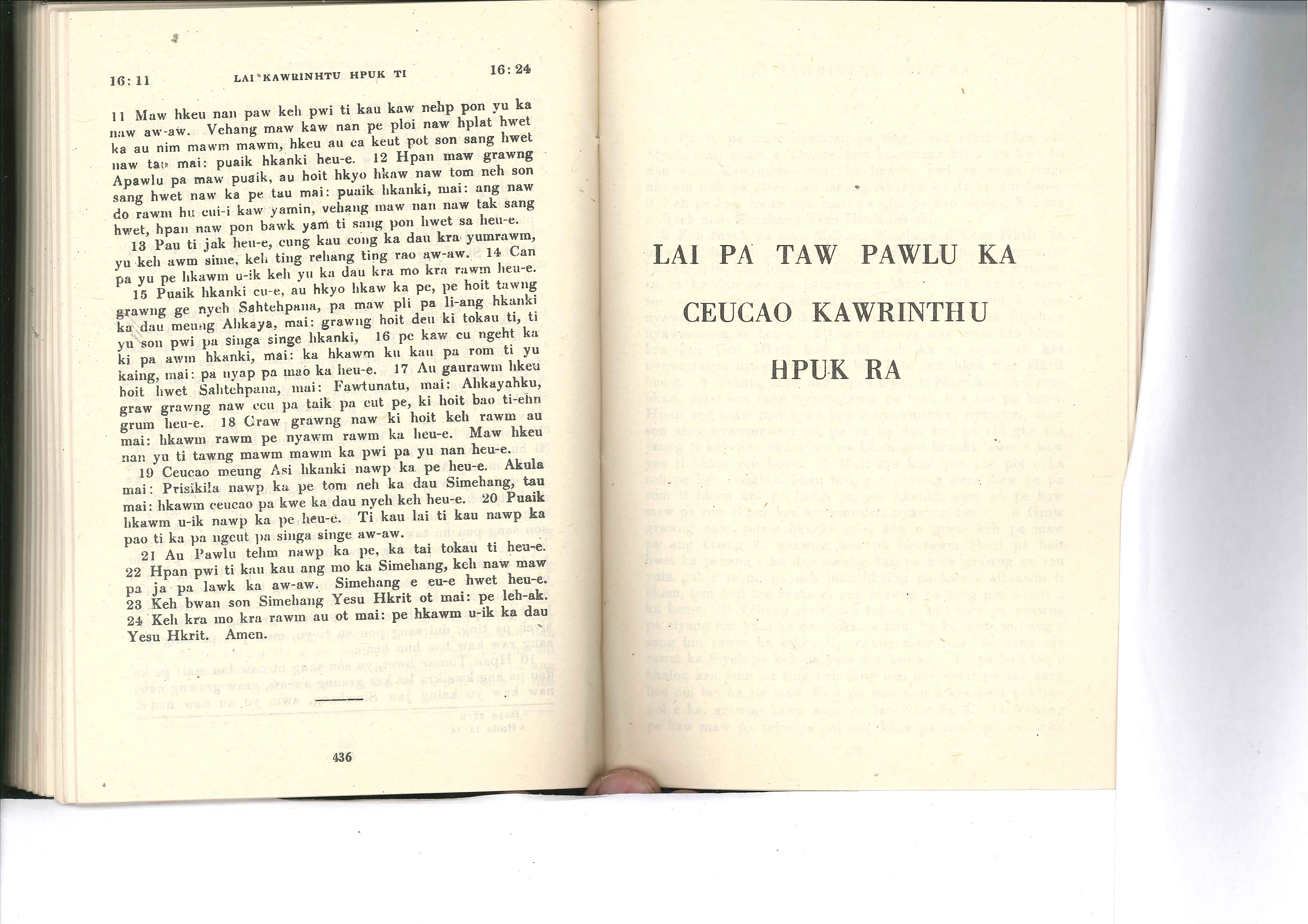 1985年佤文新約全書 哥林多前書 16 章 11 節到 16 章 24 節
