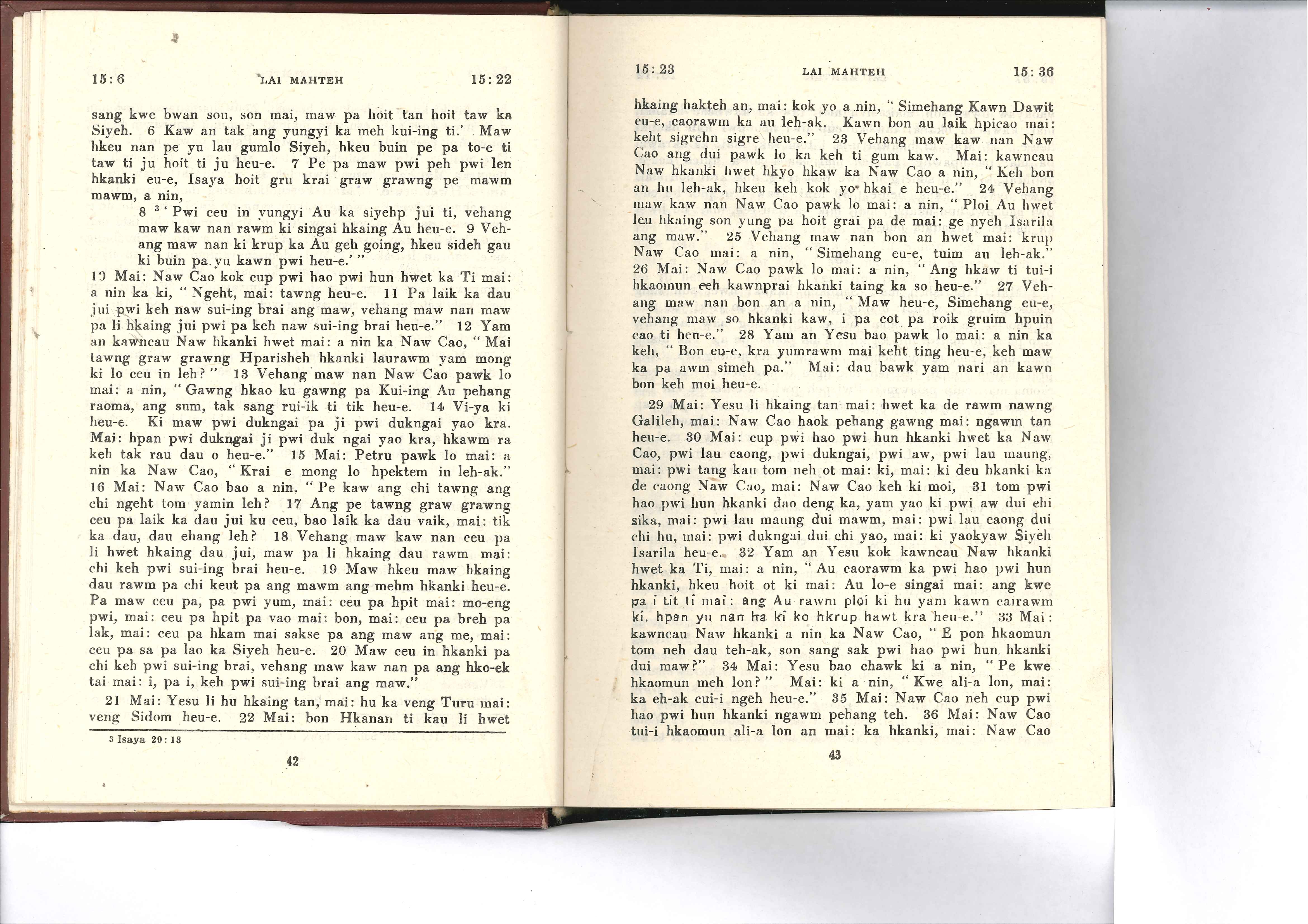 1985年佤文新約全書 馬太福音 15 章 6 節到 15 章 36 節