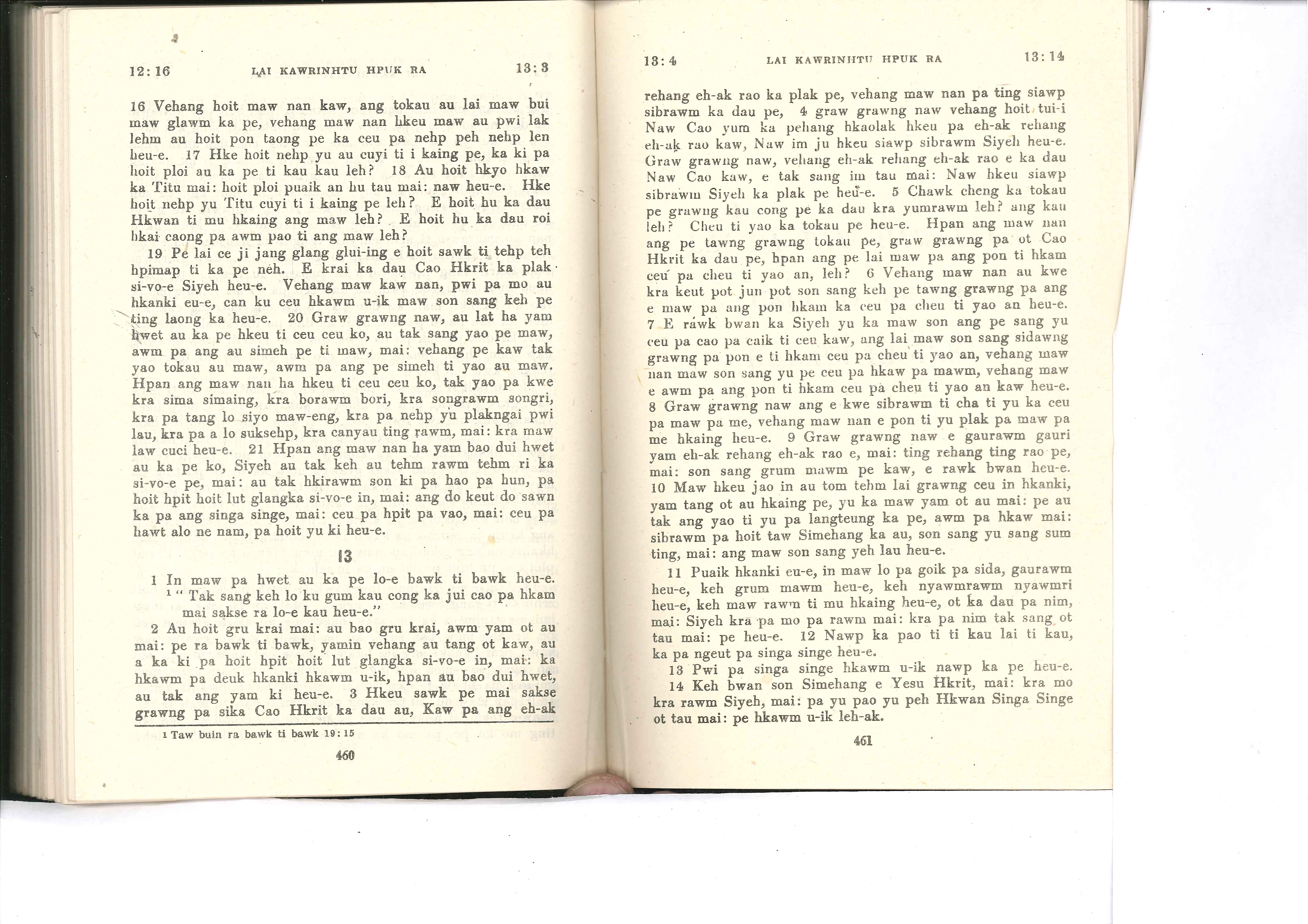 1985年佤文新約全書 哥林多後書 12 章 16 節到 13 章 14 節