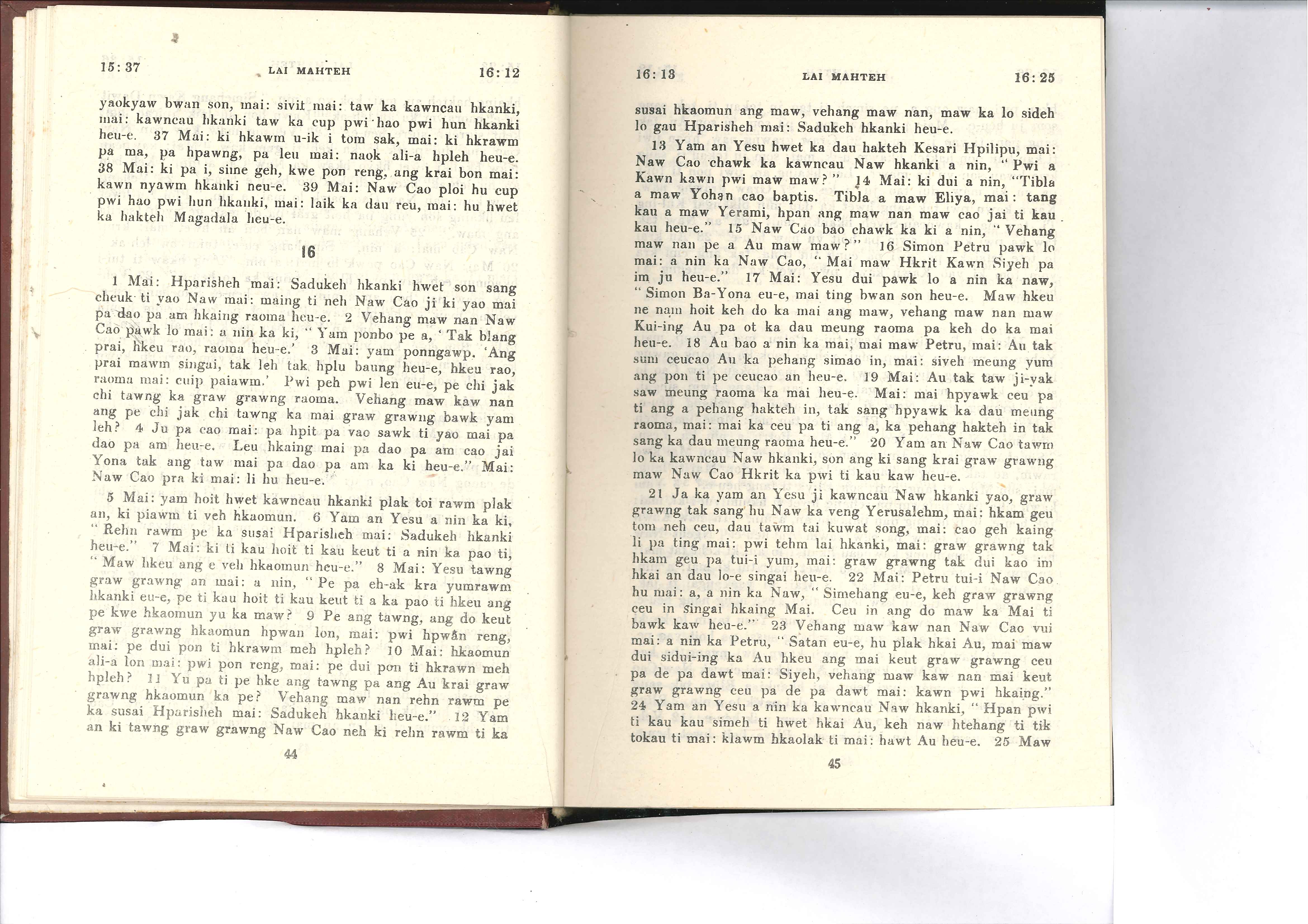 1985年佤文新約全書 馬太福音 15 章 37 節到 16 章 25 節
