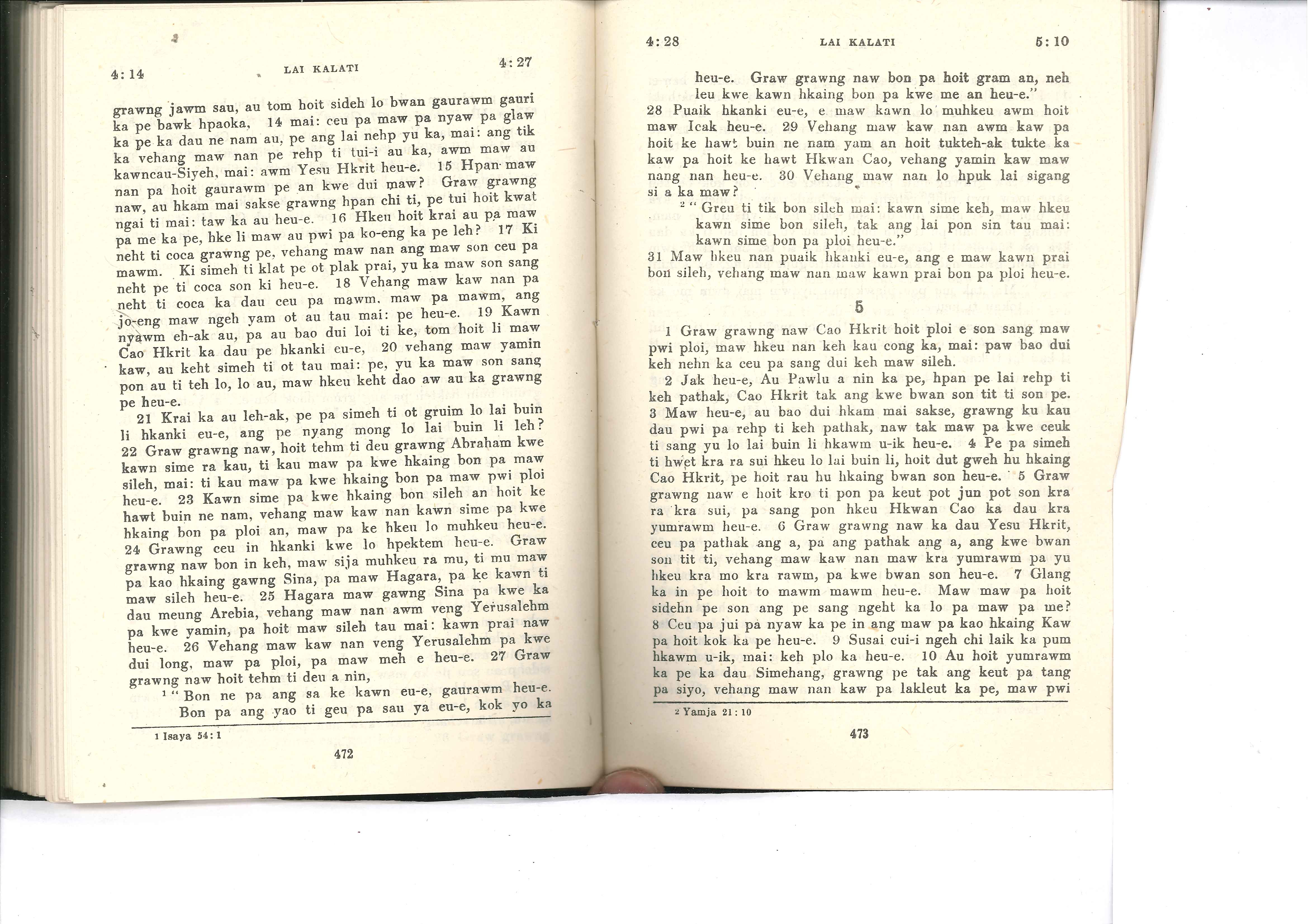 1985年佤文新約全書 加拉太書 4 章 14 節到 5 章 10 節