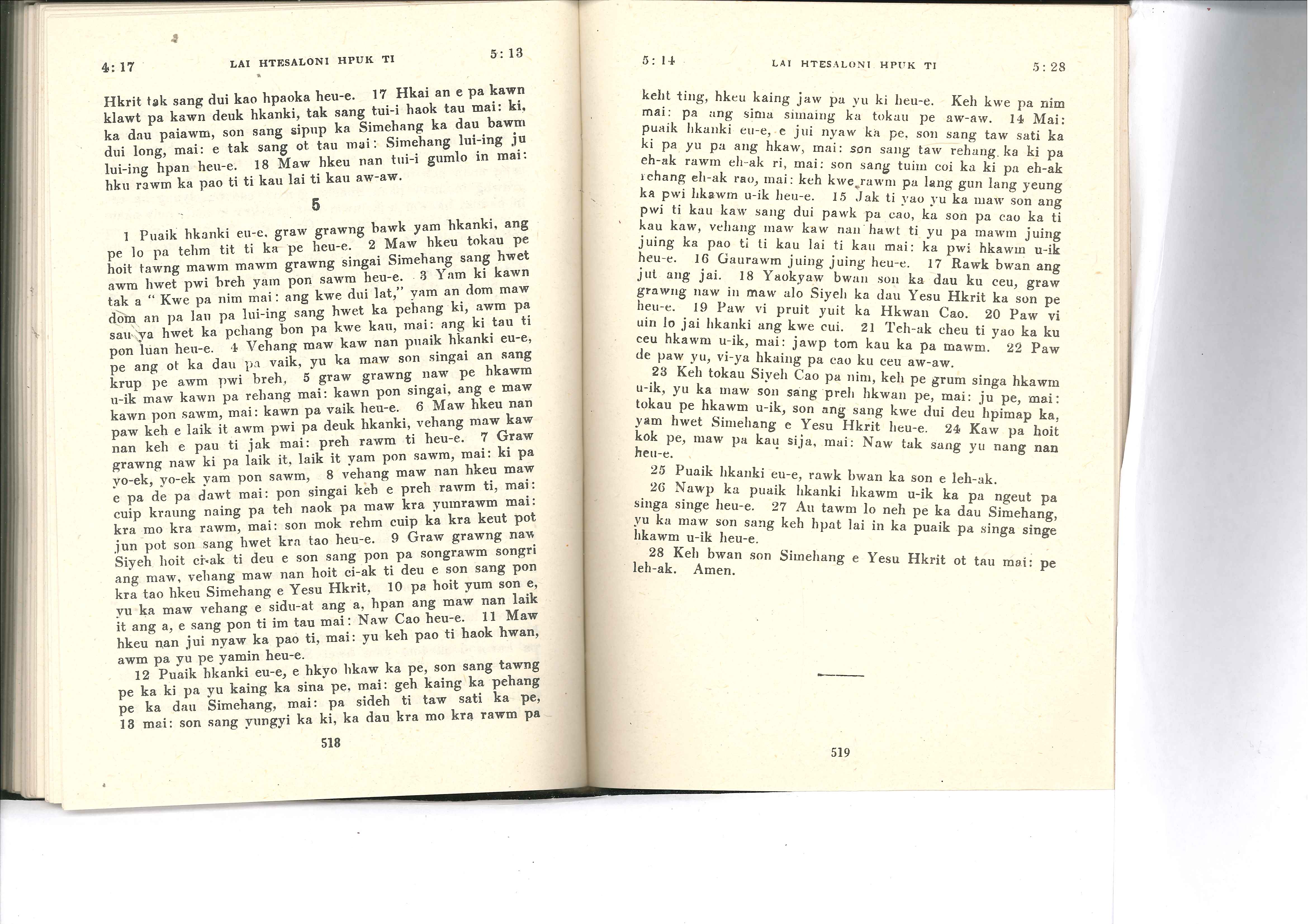 1985年佤文新約全書 帖撒羅尼迦前書 4 章 17 節到 5 章 28 節