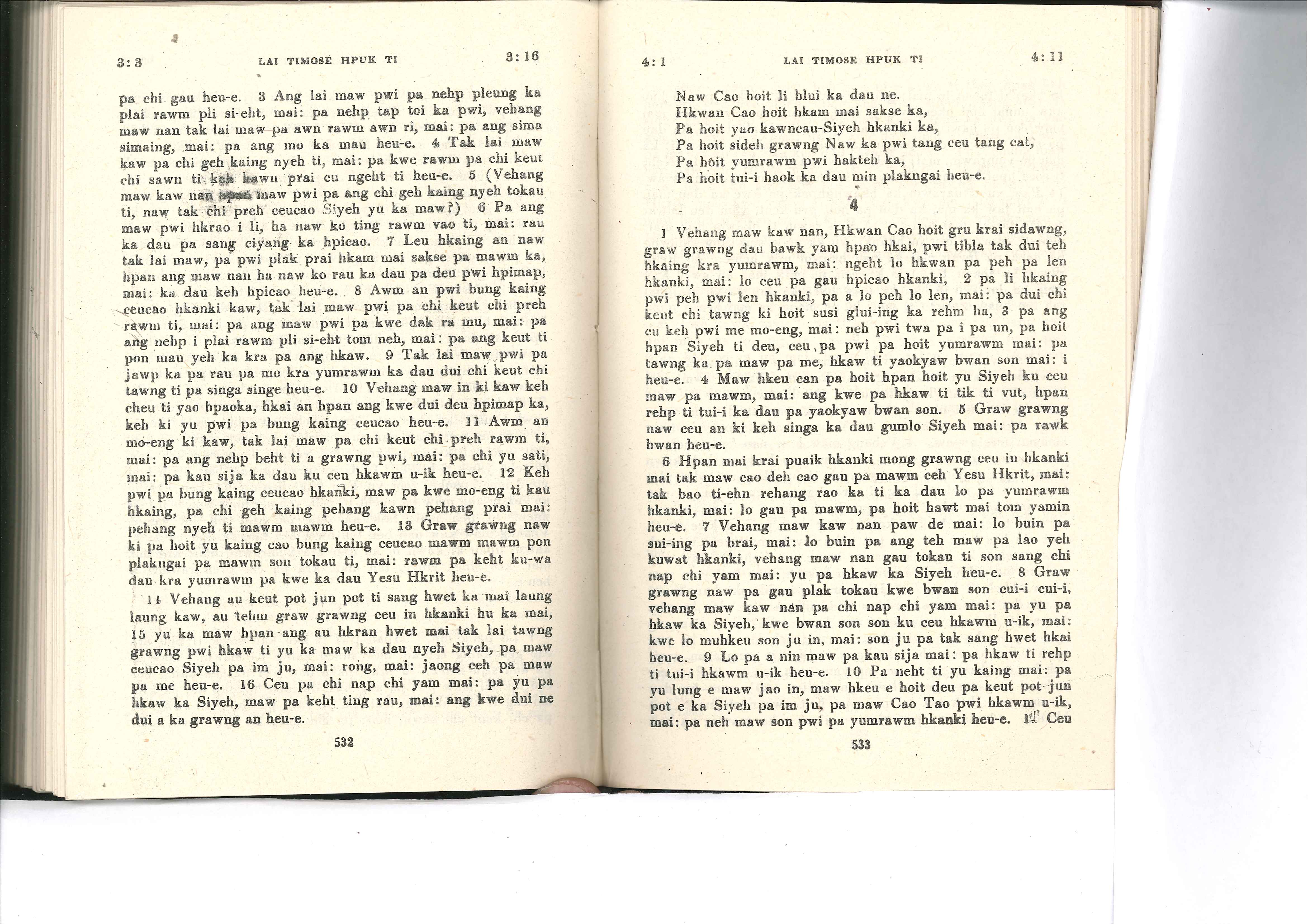 1985年佤文新約全書 提摩太前書 3 章 3 節到 4 章 11 節