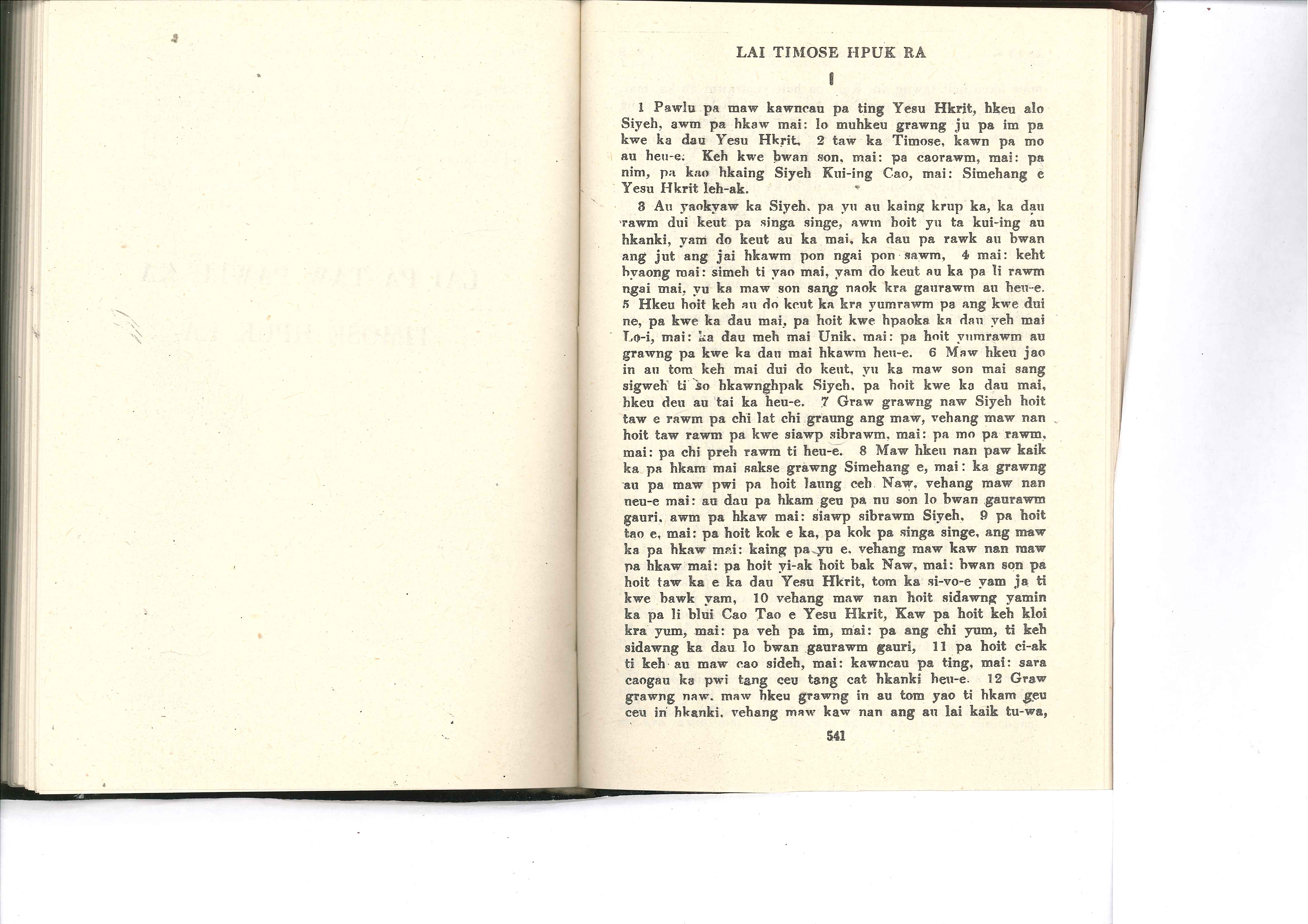 1985年佤文新約全書 提摩太後書 1 章 1 節到 1 章 12 節