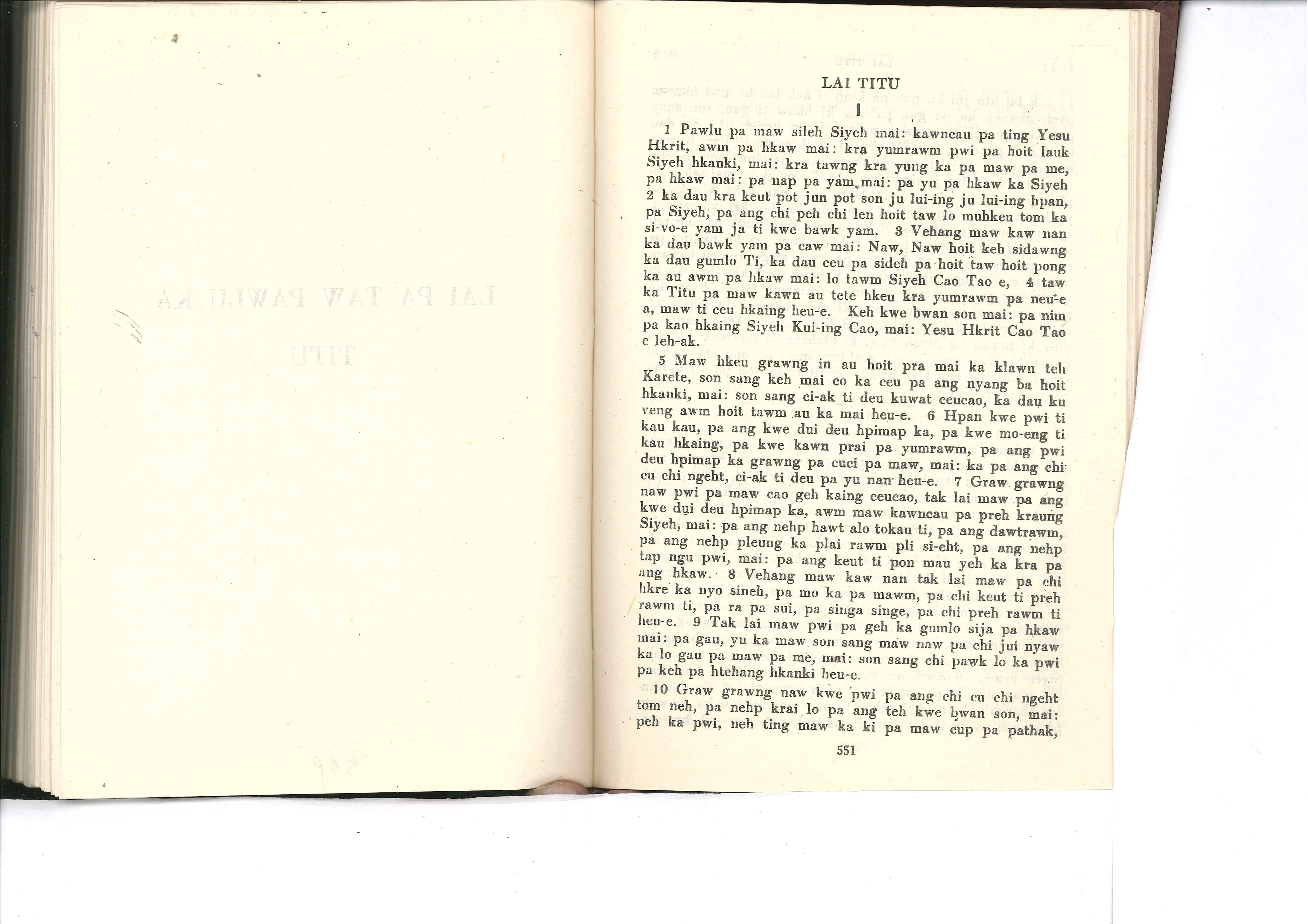 1985年佤文新約全書 提多書 1 章 1 節到 1 章 10 節