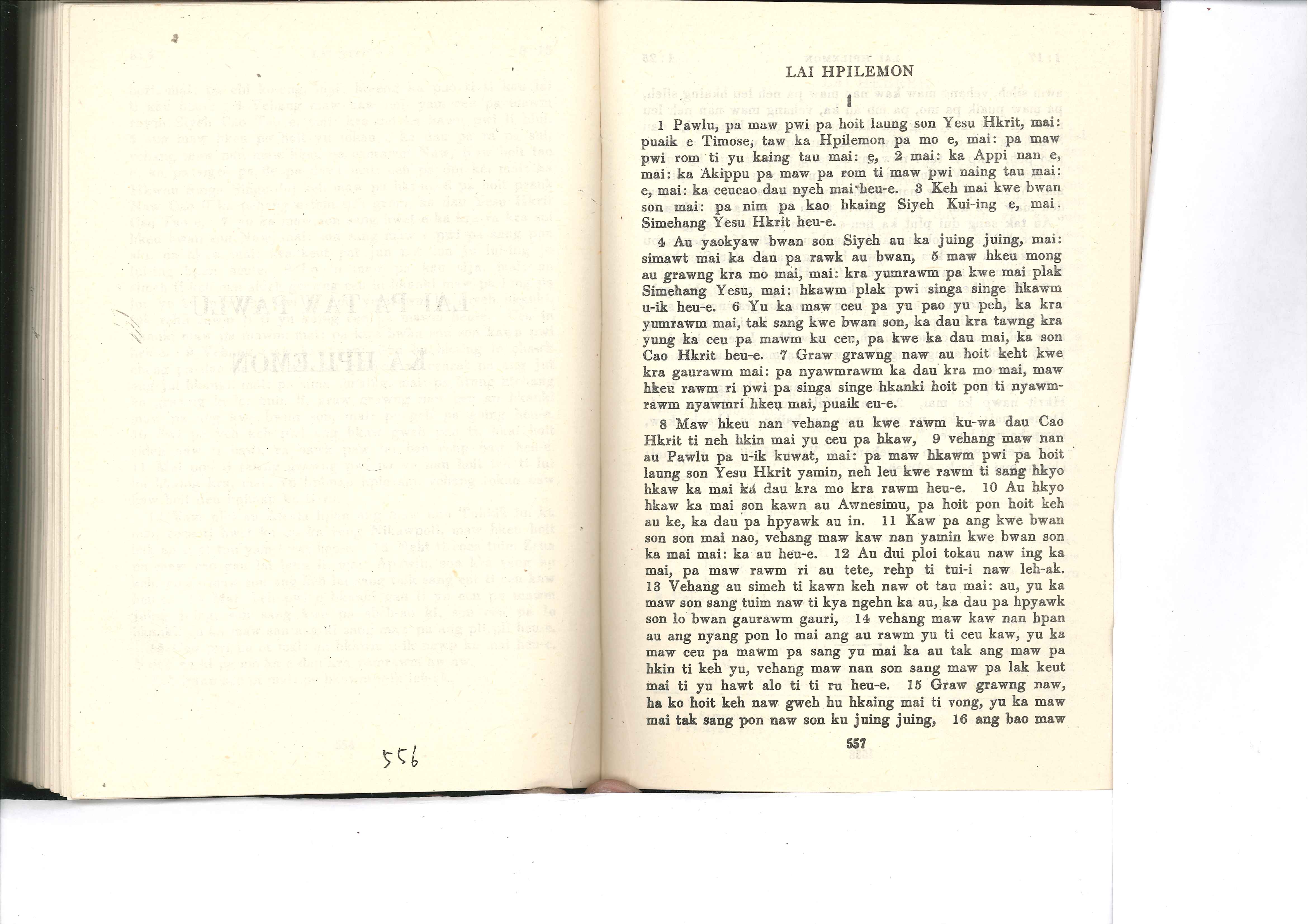 1985年佤文新約全書 腓利門書 1 章 1 節到 1 章 16 節
