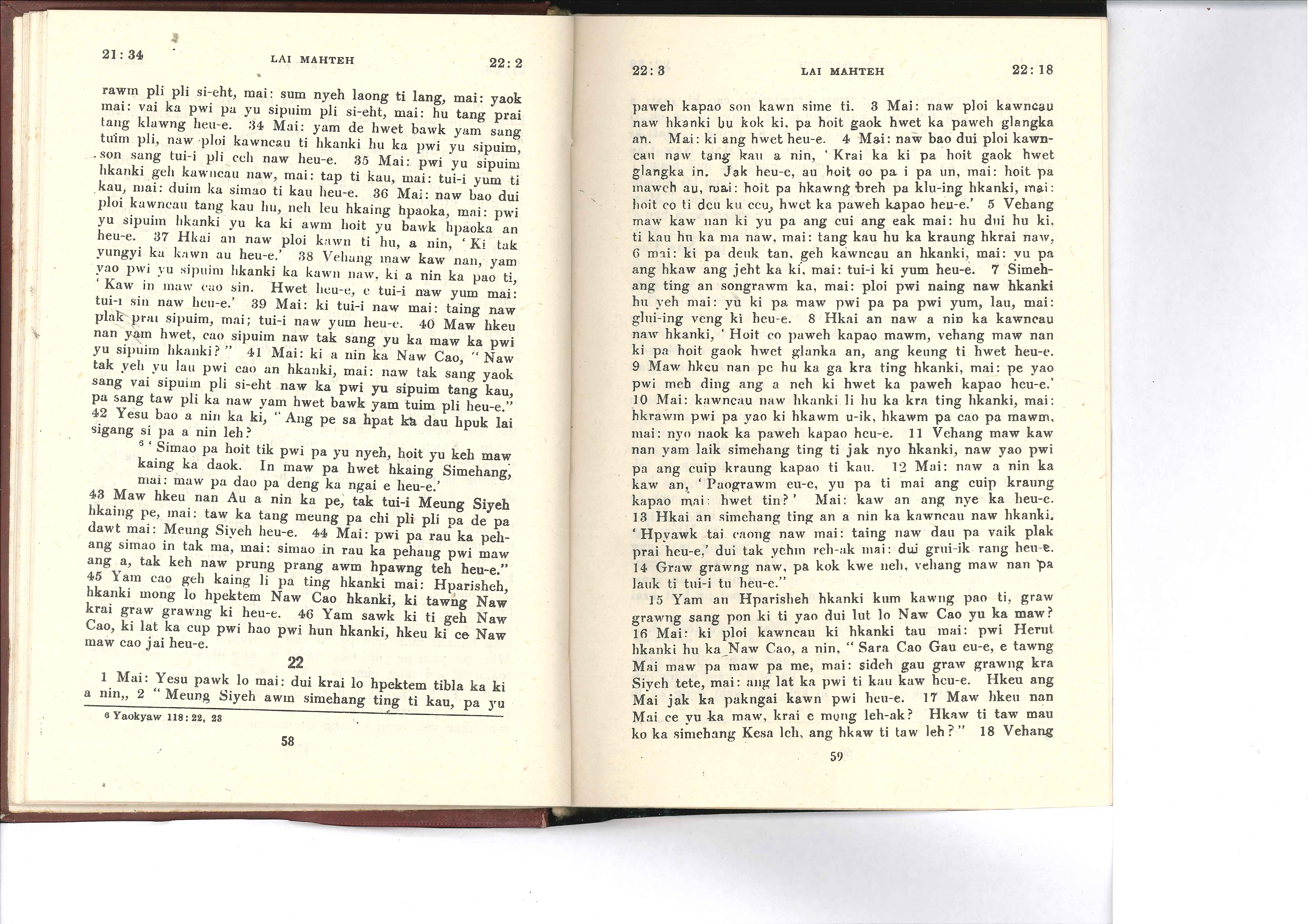 1985年佤文新約全書 馬太福音 21 章 34 節到 22 章 18 節