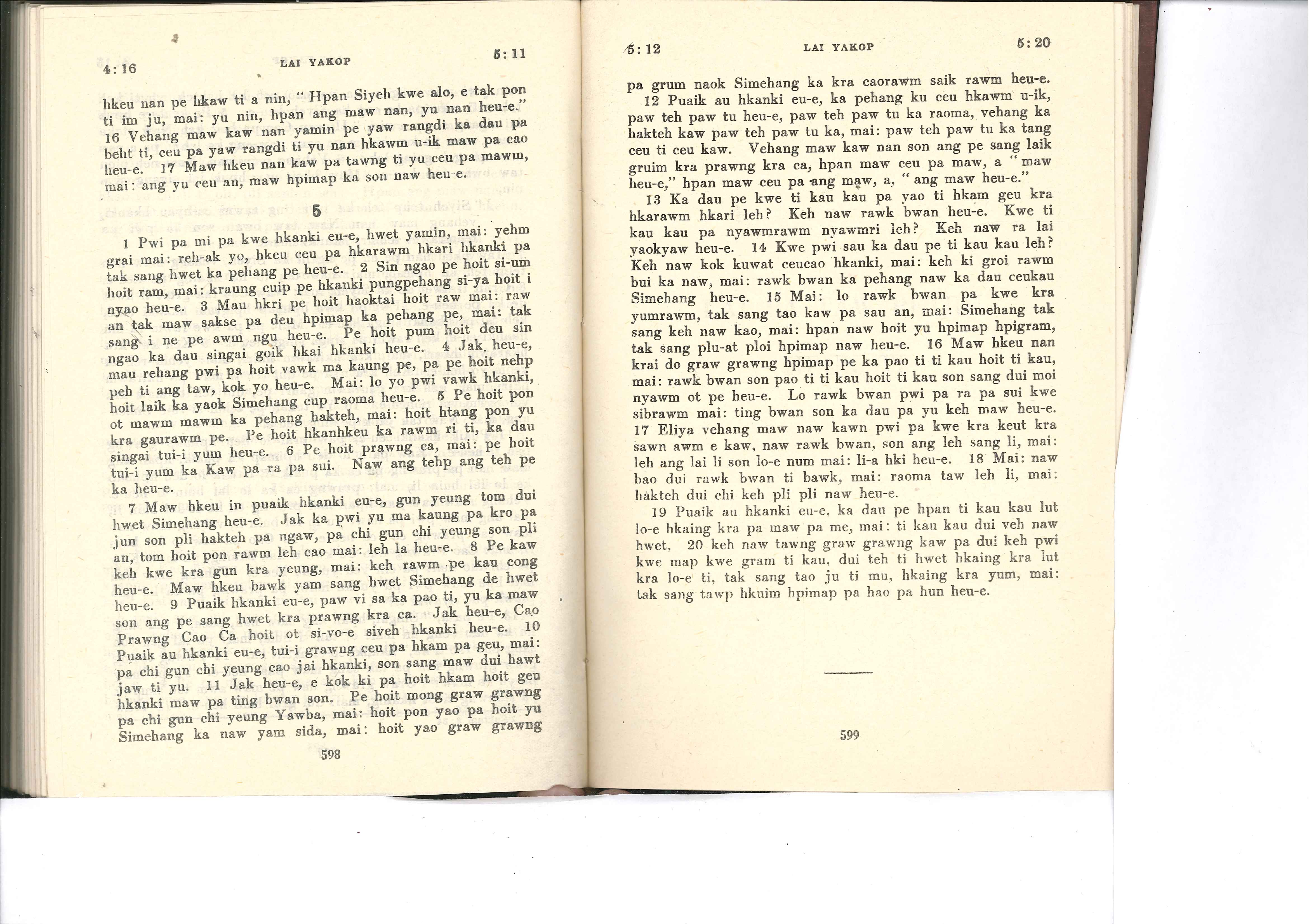 1985年佤文新約全書 雅各書 4 章 16 節到 5 章 20 節
