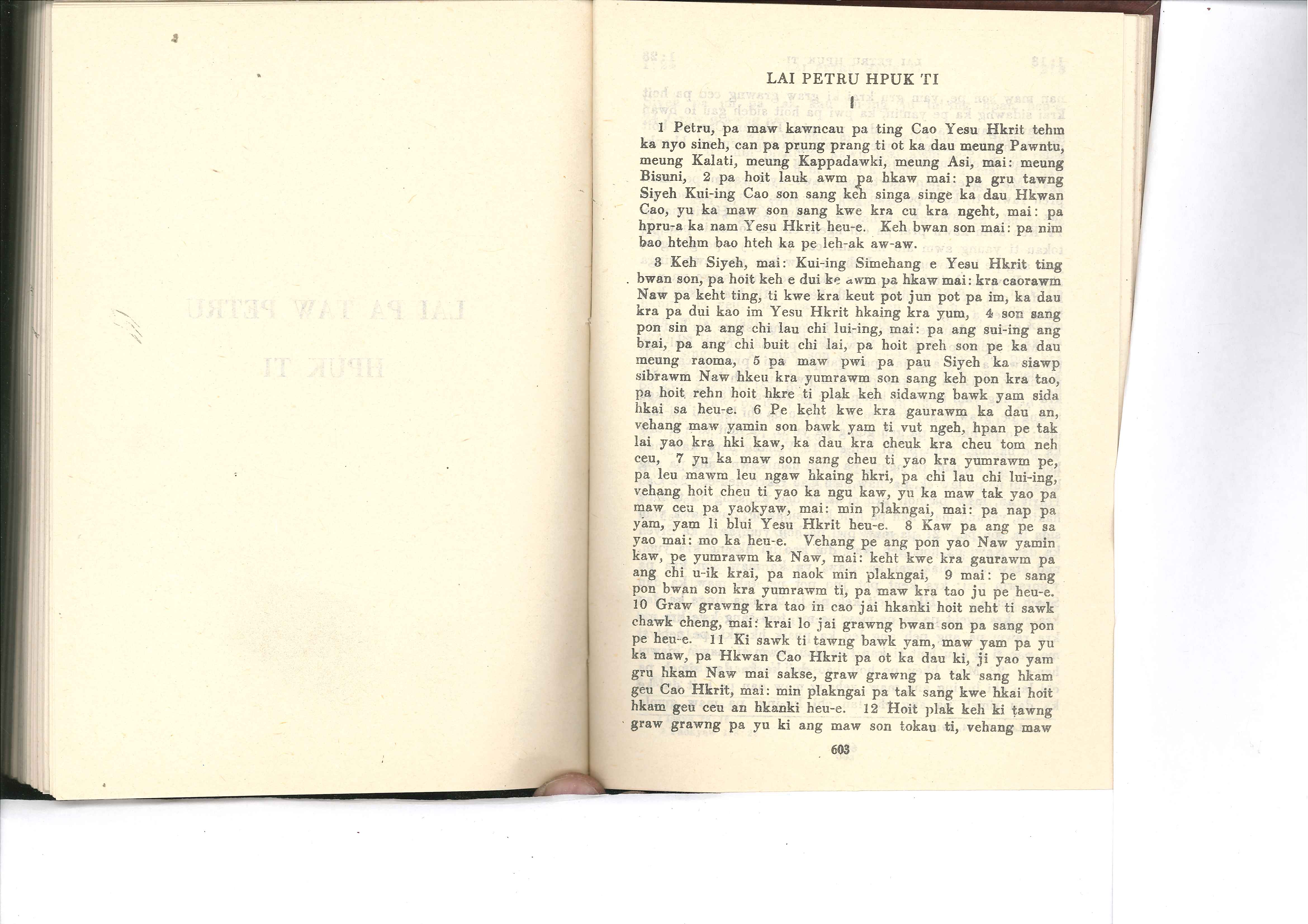 1985年佤文新約全書 彼得前書 1 章 1 節到 1 章 12 節