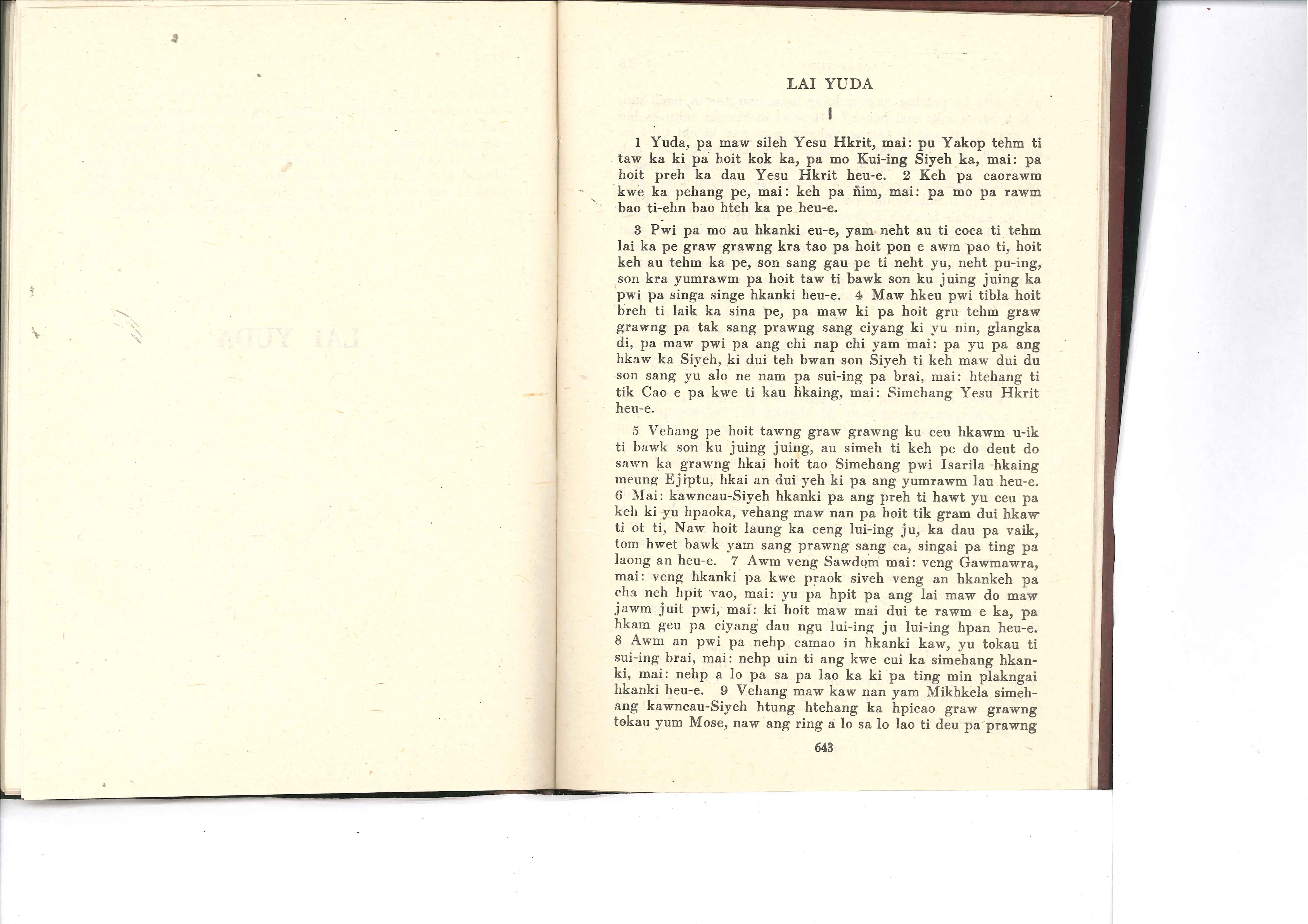 1985年佤文新約全書 猶大書 1 章 1 節到 1 章 9 節