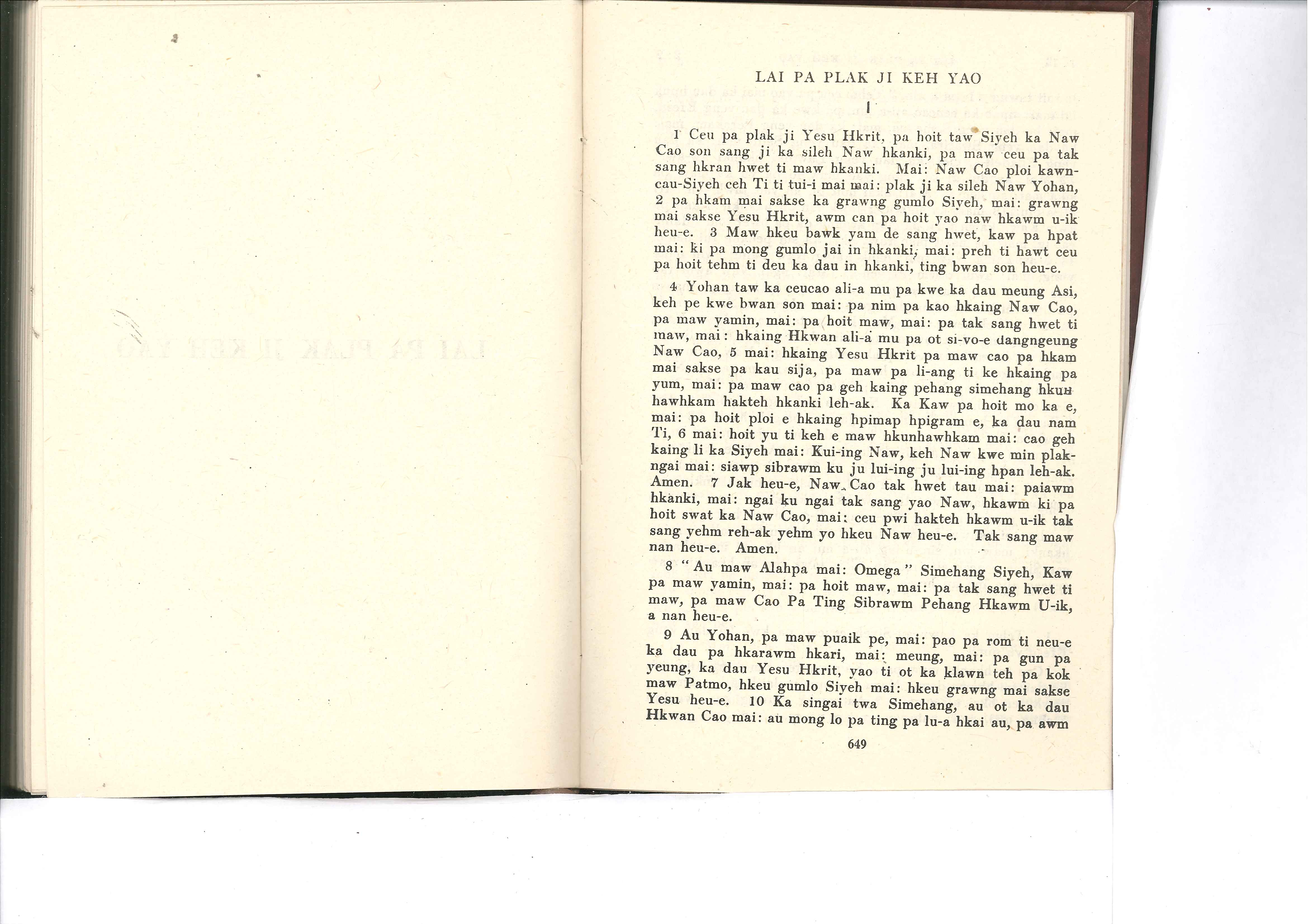 1985年佤文新約全書 啟示錄 1 章 1 節到 1 章 10 節