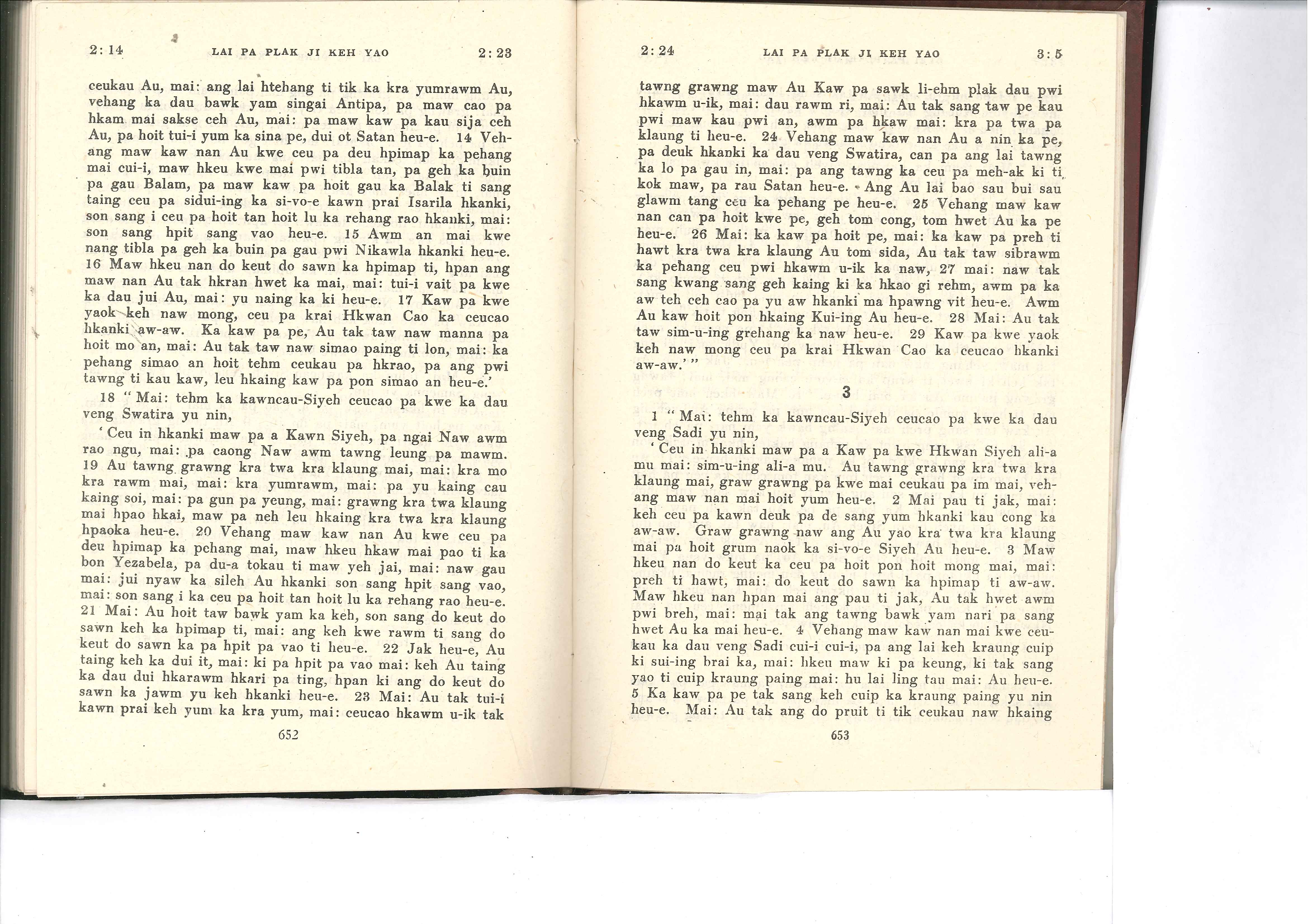 1985年佤文新約全書 啟示錄 2 章 14 節到 3 章 6 節