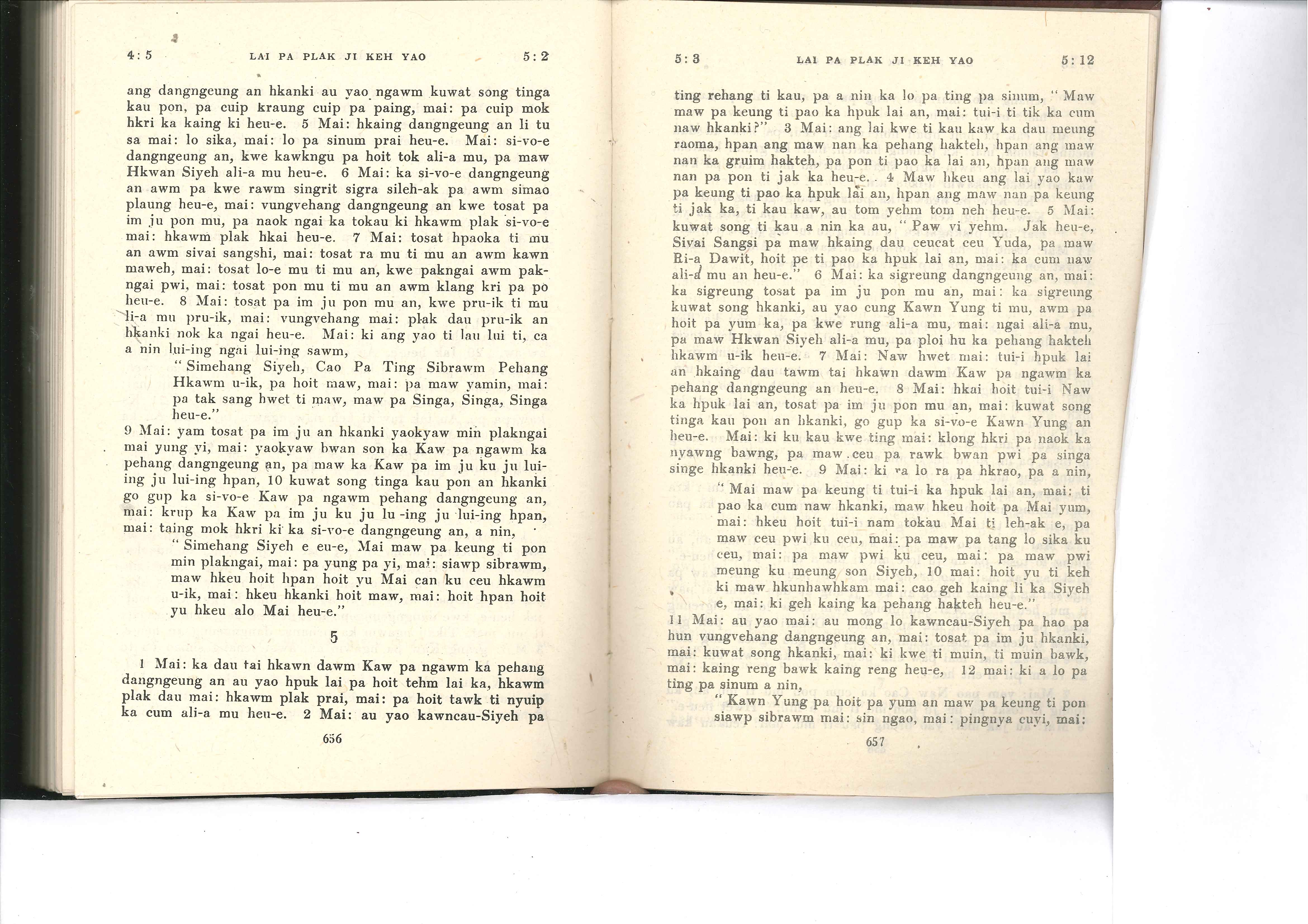 1985年佤文新約全書 啟示錄 4 章 5 節到 5 章 12 節