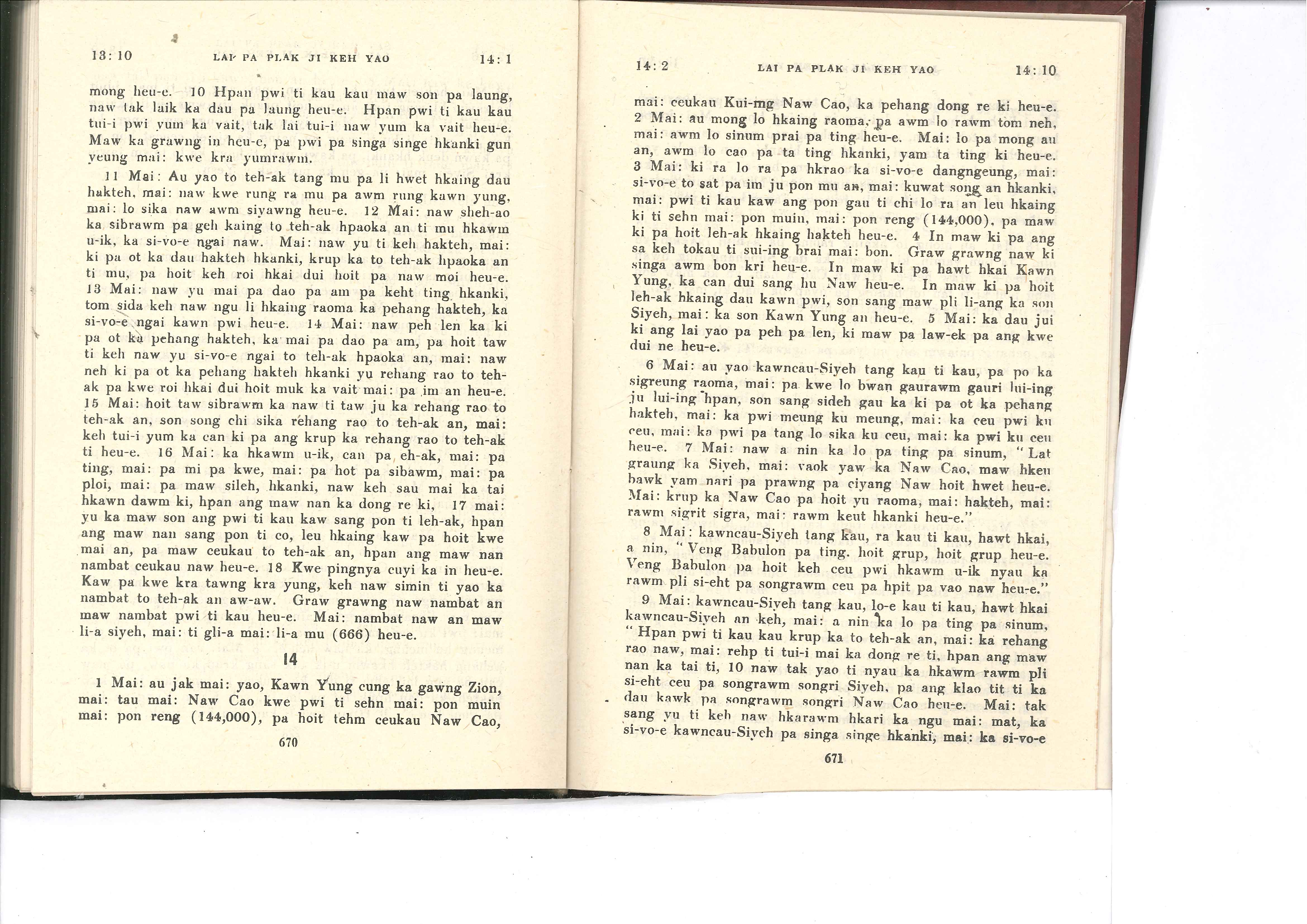 1985年佤文新約全書 啟示錄 13 章 10 節到 14 章 10 節