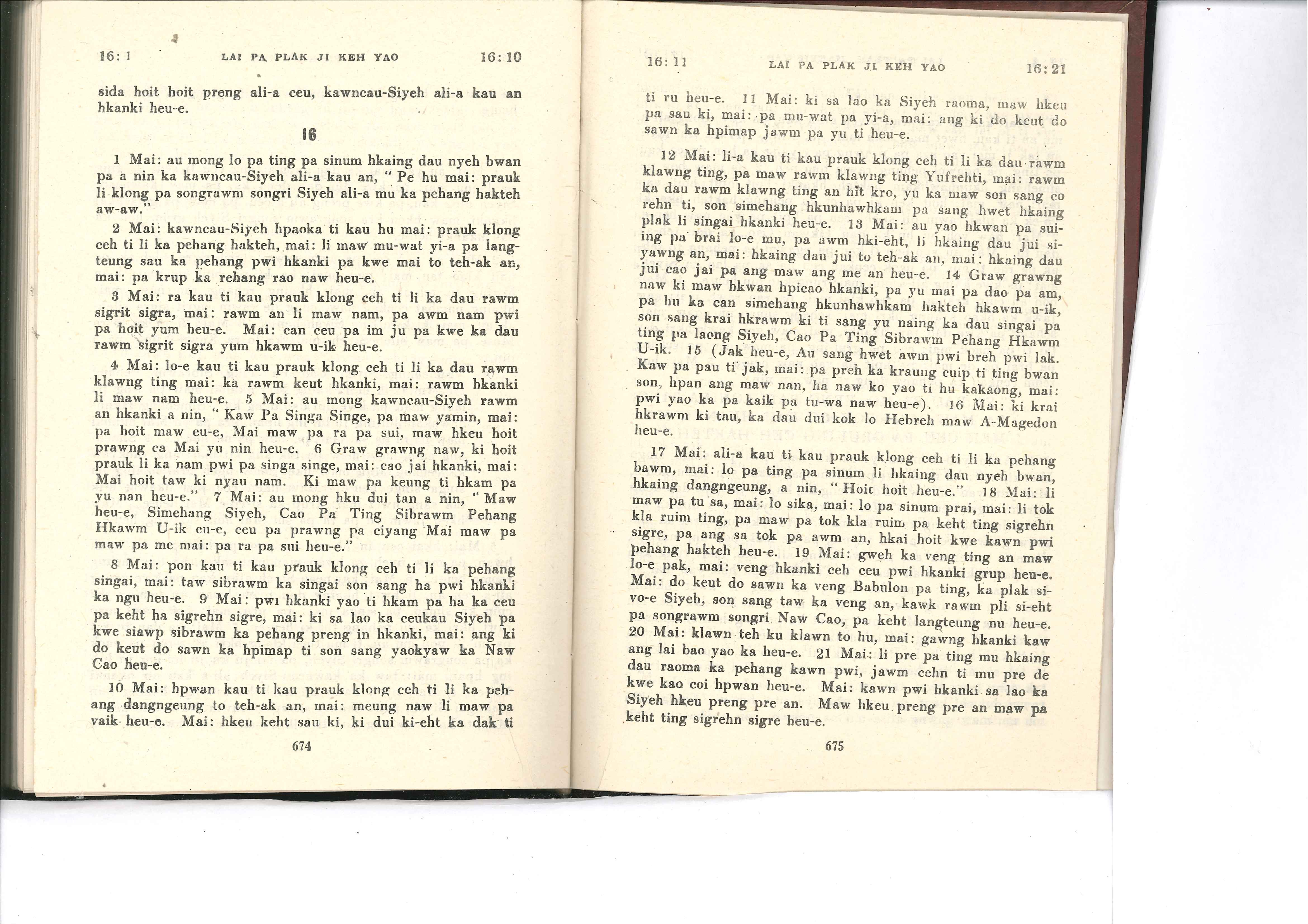 1985年佤文新約全書 啟示錄 16 章 1 節到 16 章 21 節